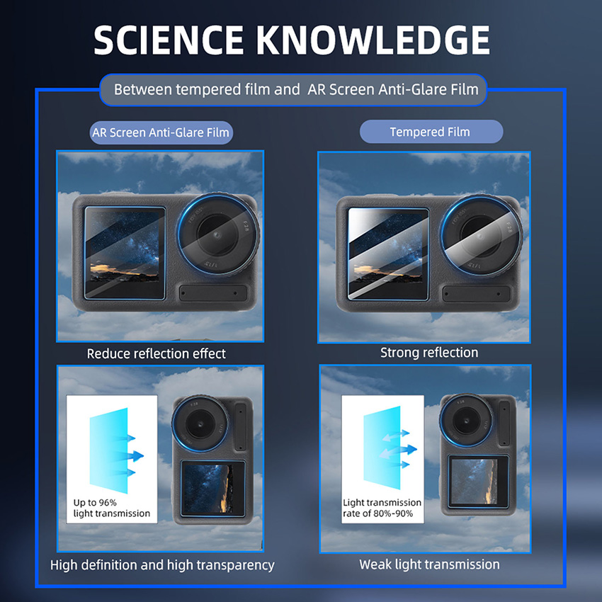 l High light transmission rate of up to 96%, clear shooting, and recording of wonderful moments