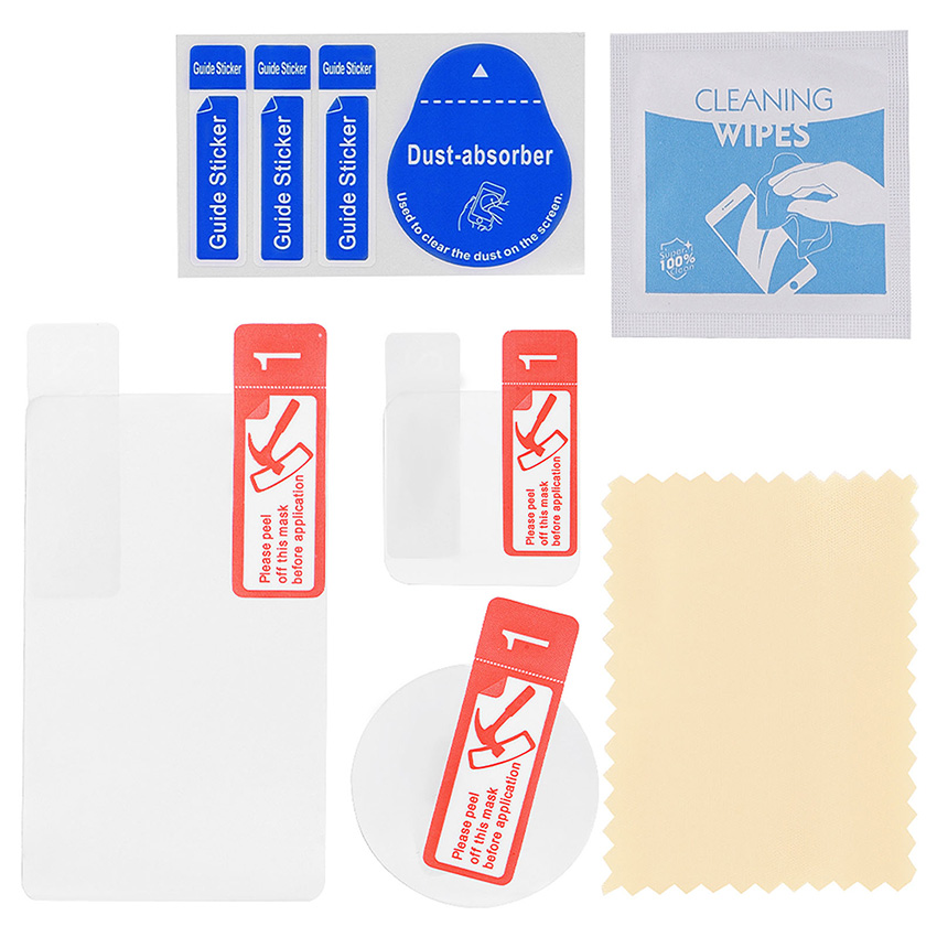 l 3x AR Screen Anti-glare Films, 1x Alcohol Pack, 1x Cleaning Cloth, 1x Dust Patch
