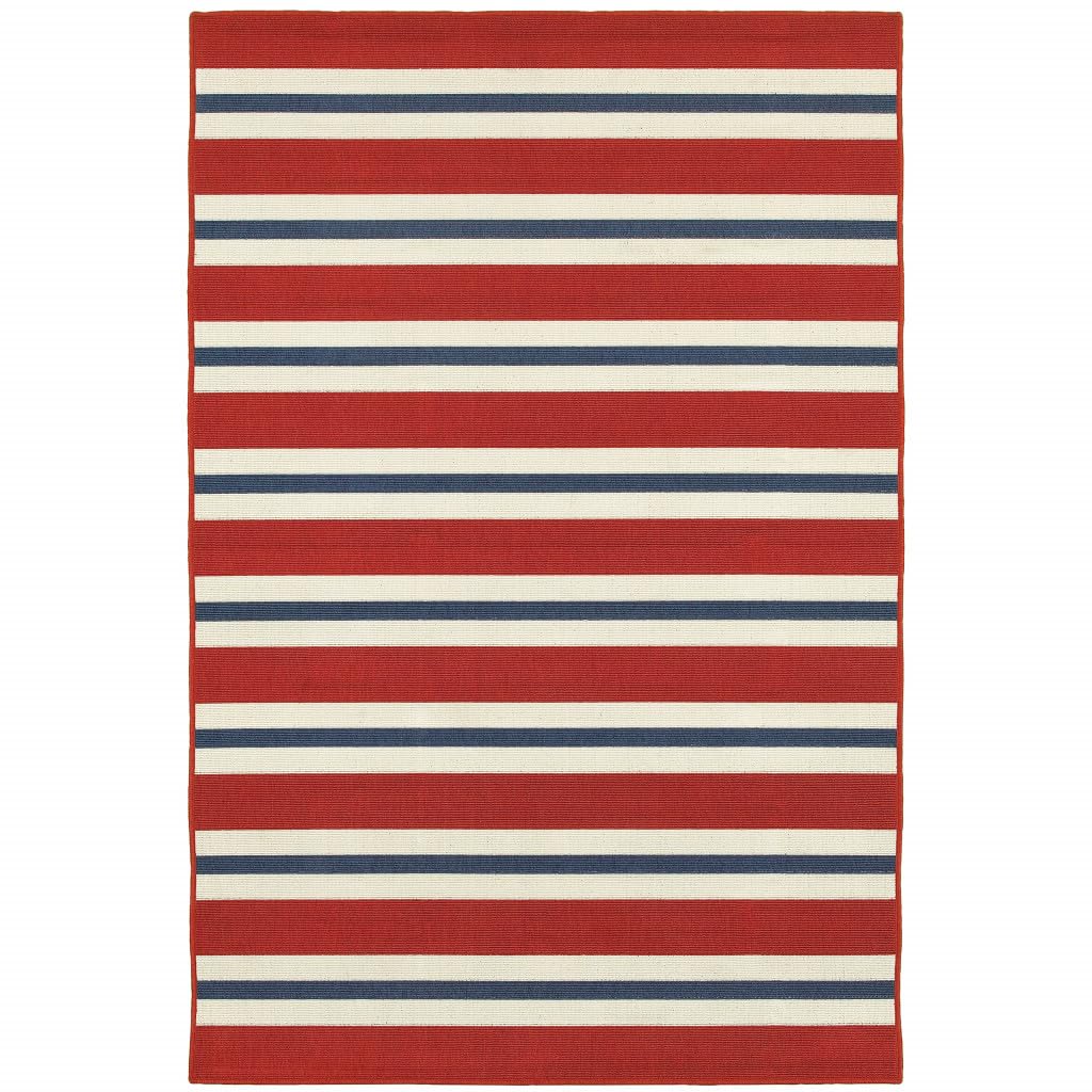 2' X 3' Red and Ivory Geometric Stain Resistant Indoor Outdoor Area Rug