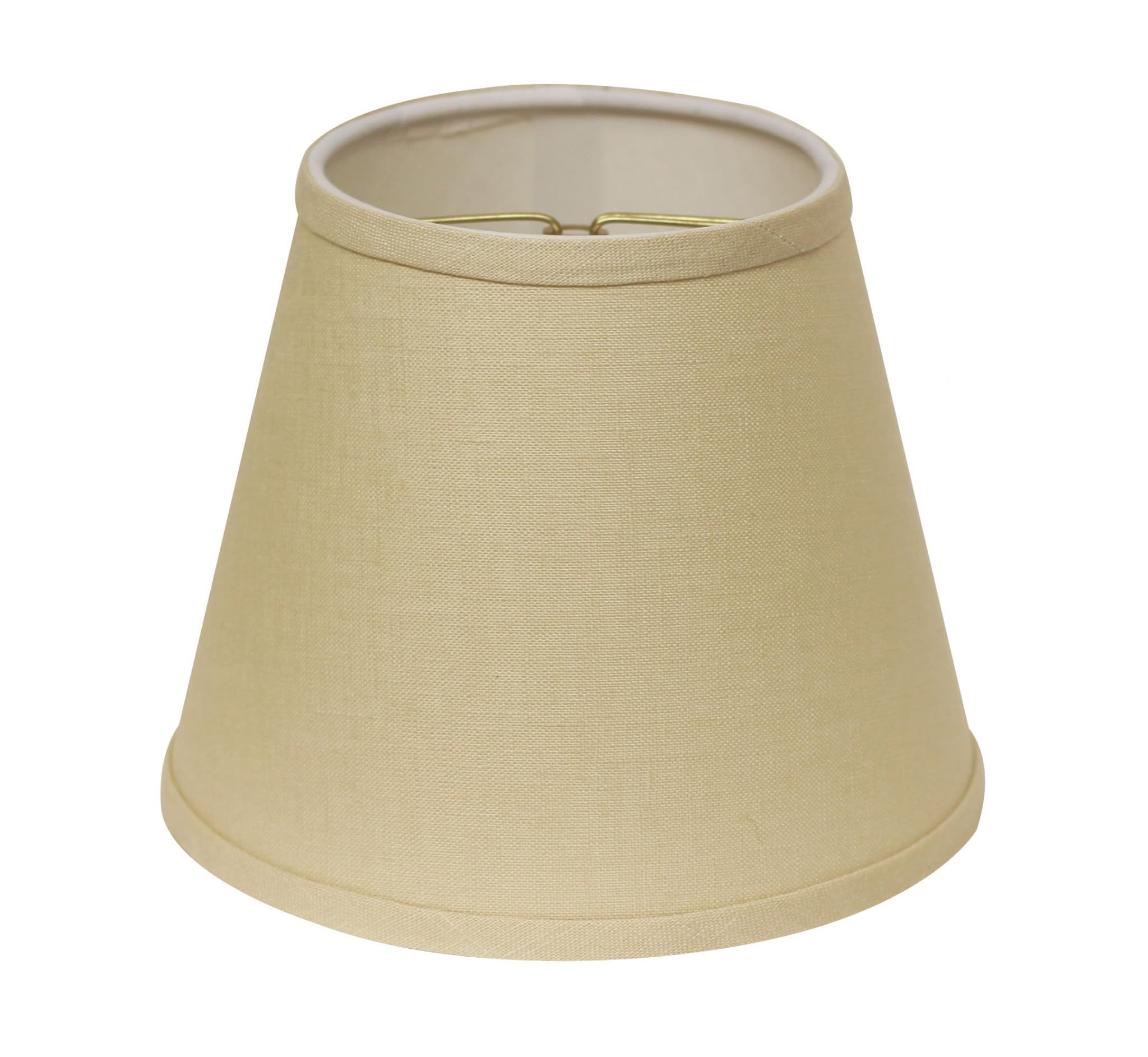 This Parchment Biege Hardback Empire Linen Lampshade has a hint of traditional flair and will be a great addition to your lamp base. This hardback lampshade includes a standard bulb clip that fits over a standard harp and can be used with your existing finial design. This high quality crafted drum shape has a slight slant to give it some visual interest and is crafted of the finest heathered linen weave with a fold on top and bottom of the shade. Features. High Quality Fabric Lamp Shade. Features a sturdy brass finish metal Bulb Clip that fits securely to your bulb. No finial is needed. Made from highquality linenSpecifications. Color Parchment Biege. Material Linen. Size 8 L x 8 W x 6.5 H. Style Traditional. Finish Brass. Light Color Warm White. Lampshade Type Lamp Shade. Attachment Type Clip on. Shape Empire. Primary Material Linen. Top Width Side to Side 5. Top Depth Front to Back 5. Bottom Diameter 8 in.. Slant Height 6.5 in.. Country of Origin United States. Weight 2.05 lbs