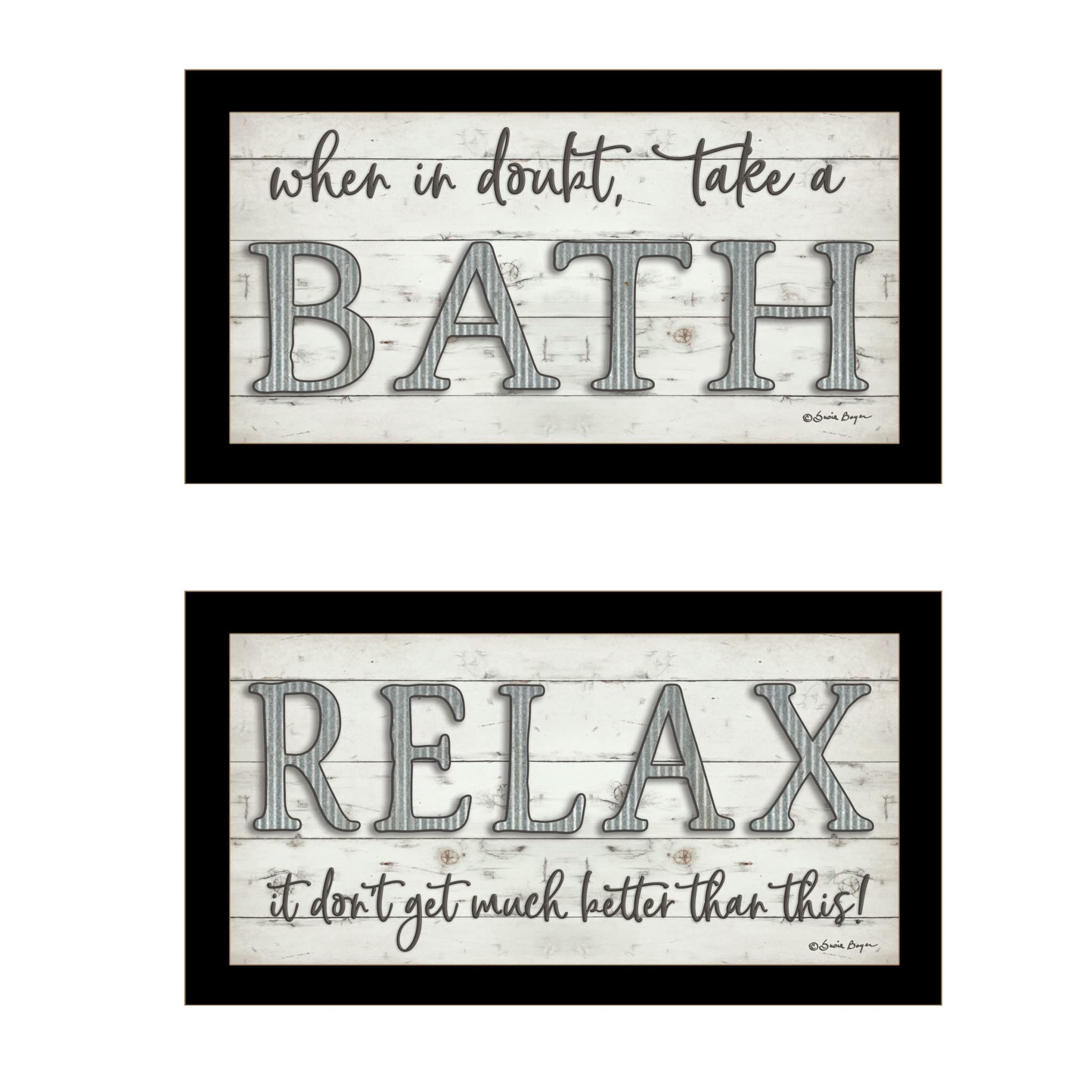 The set of two bath relax vignette 3 black framed print bathroom wall art is the perfect decorative accessory for your home. This print is a visual artistic expression that allows you to decorate your space in style. Reproduced for you on paper, this hanging accent will be a trendy and fashionable way to dress your wall. Adding this hanging wall art to make your room feel more finished and attractive. Utilize this opportunity to create a focal point in the room in the room. with this fabulous wall decor option. 11" H x 20" W x 1" D