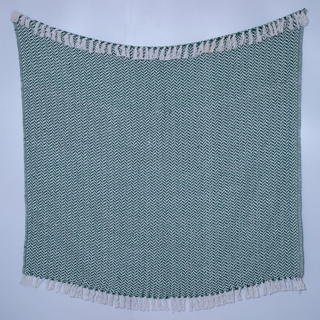 60 X 50 Green Woven Cotton Chevron Throw Blanket with Fringe