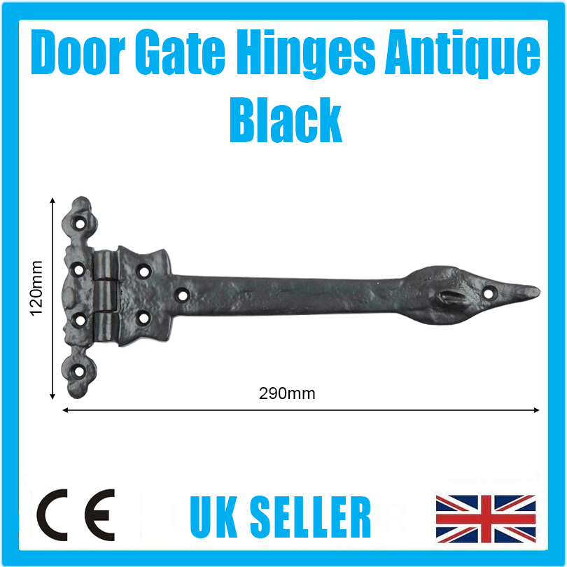 6x 290mm Door Gate Cabinet Shed Hinge Antique Vintage Black Heavy Duty Cast Iron
