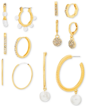 Indulge in the elegance and versatility of the **Steve Madden Gold-Tone 6-Pc. Set Crystal & Imitation Pearl Hoop Earrings** and let your style shine.