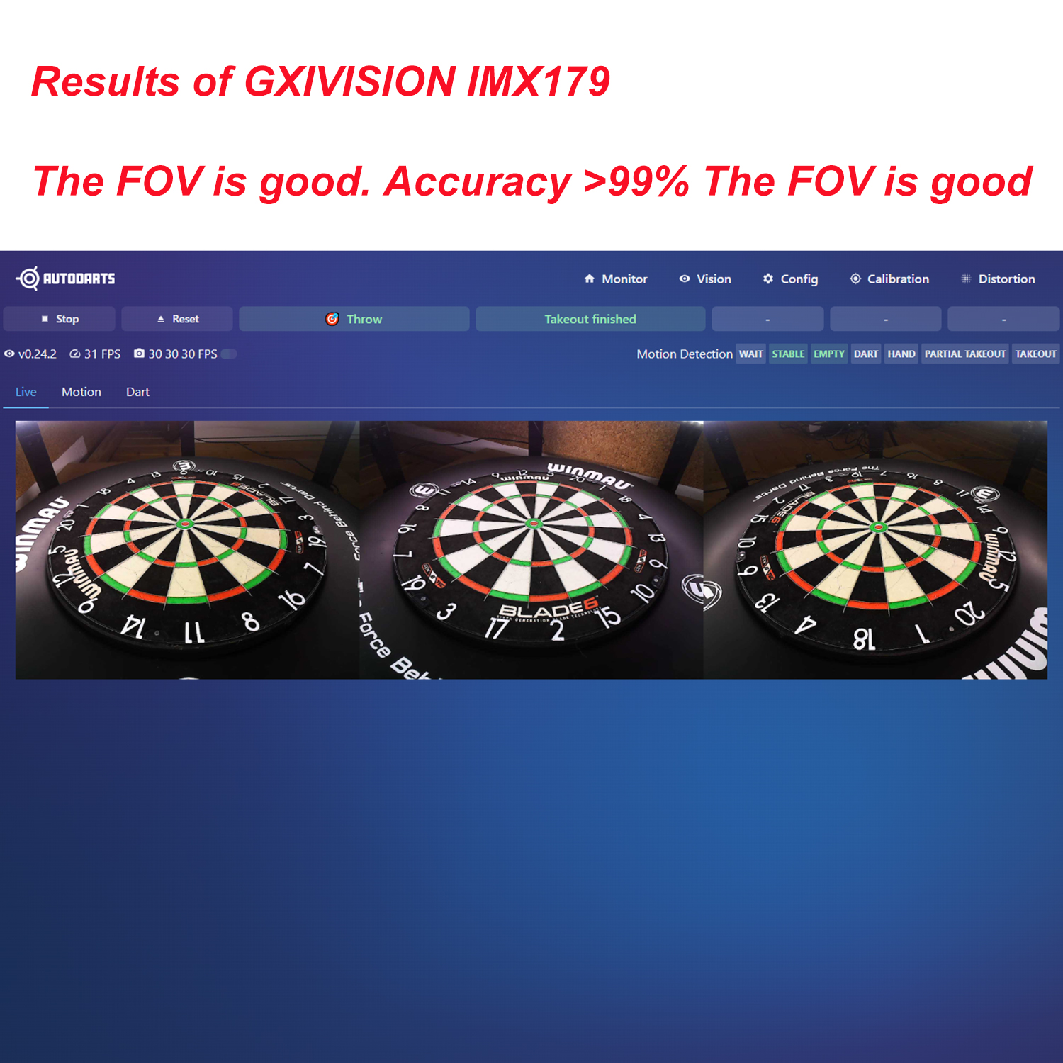 Genauigkeit ebenfalls >99 %, das Sichtfeld ist gut.