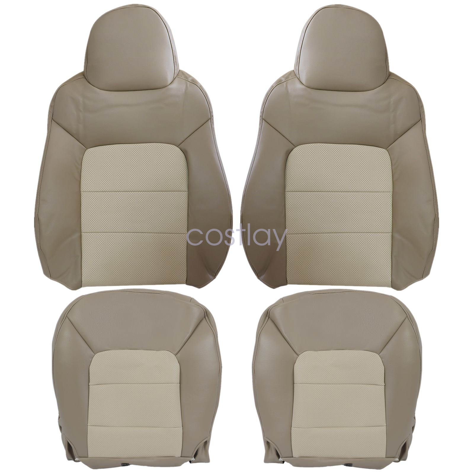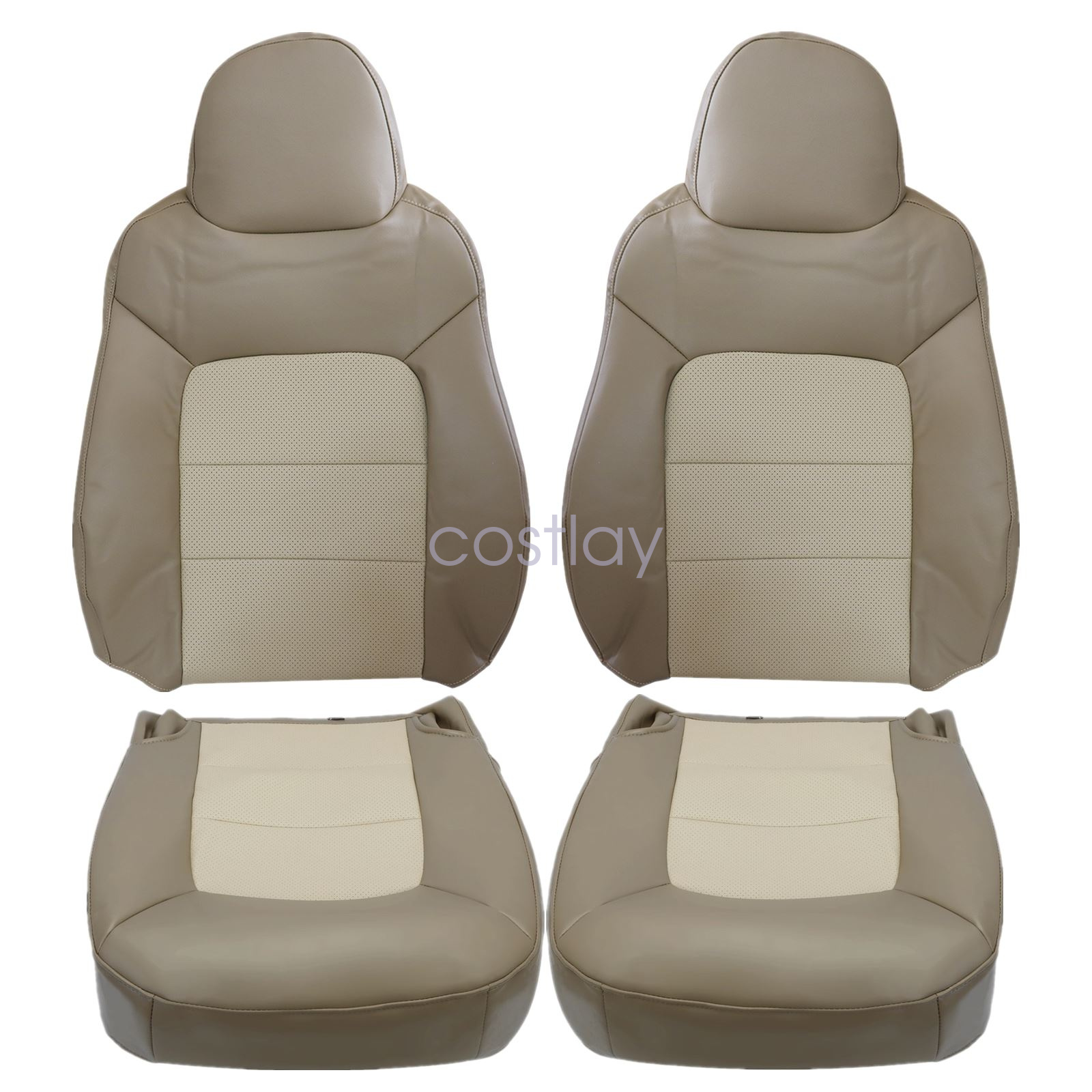 For 2003-2006 Ford Expedition Driver / Passenger Side Replacement Leather Bottom / Top Lean Back Seat Cover 2-Tone Tan