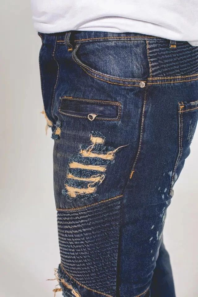 Upgrade your look with these Men's Skinny Jeans. Featuring a Slim Fit and crucial Stretch Denim, these Ripped Distressed Pants offer comfort and style. Ideal Biker Jeans for a sharp, modern edge. High quality fabric ensures durability. Perfect Denim for casual or street wear.