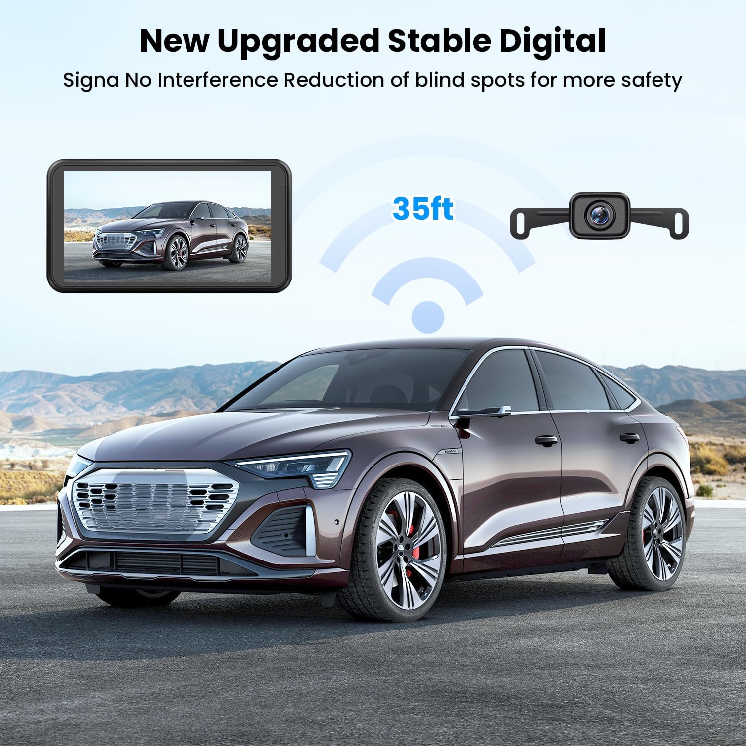 Improved Digital Signal and Durability:The back up camera for cars wireless adopts the latest wireless frequency hopping technology to transmit 2.4G wireless signals in real time, no delay and signal interference. The transmission distance can be up to 100M in open space and up to 35FT within the vehicle range, especially suitable for trucks/cars/pickup/hitch trailers etc.