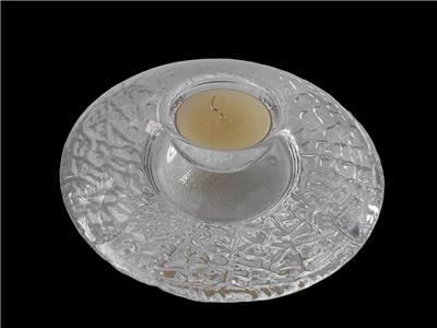 SIGNED ORREFORS ART GLASS DISCUS SHAPE 5 1/4" ROUND VOTIVE CANDLE HOLDER. NEW WITHOUT BOX. IT HAS THE ORIGINAL PURCHASE STORE LABEL, ALONG WITH THE ORREFORS LABEL. I INCLUDED A VOTIVE CANDLE.