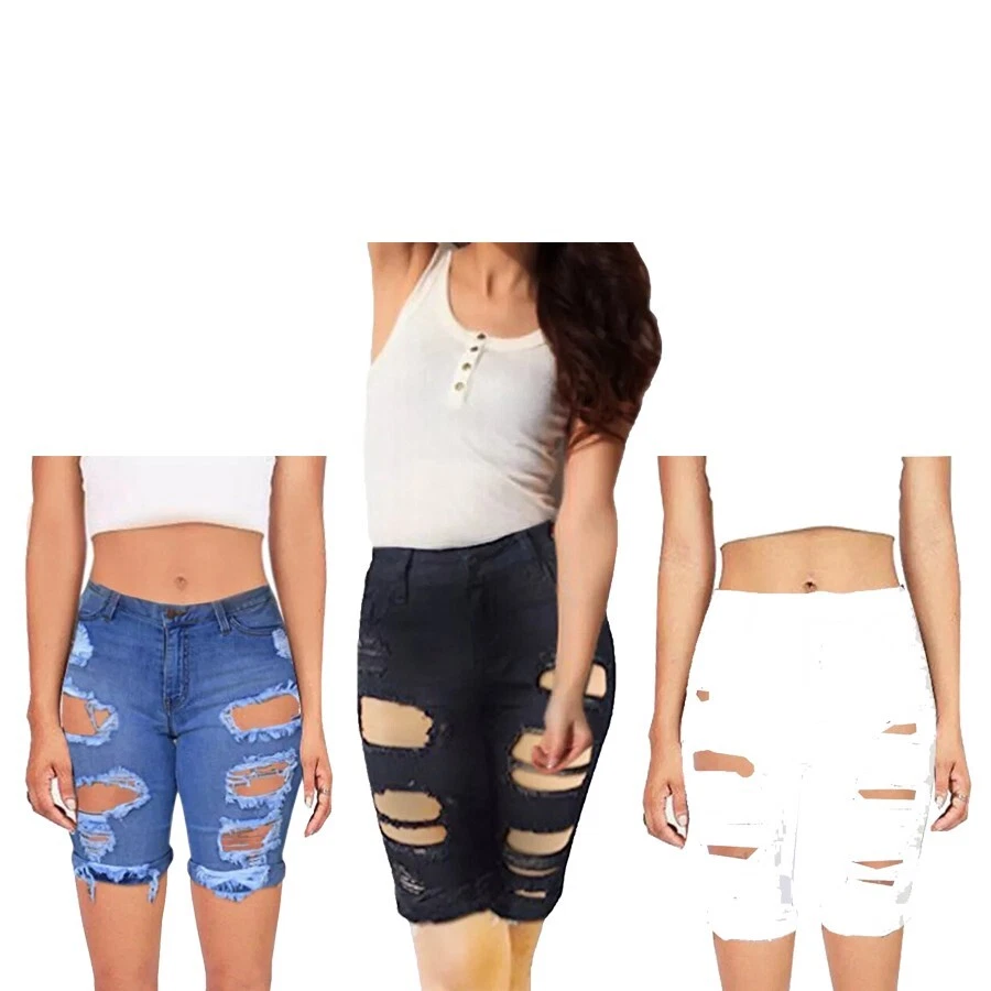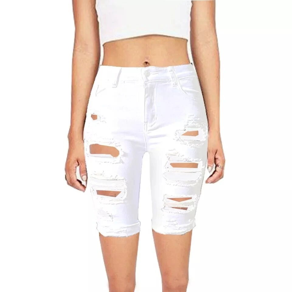 Women's Stretch Denim Shorts High Waist Ripped Jean Casual Summer Hot Pants