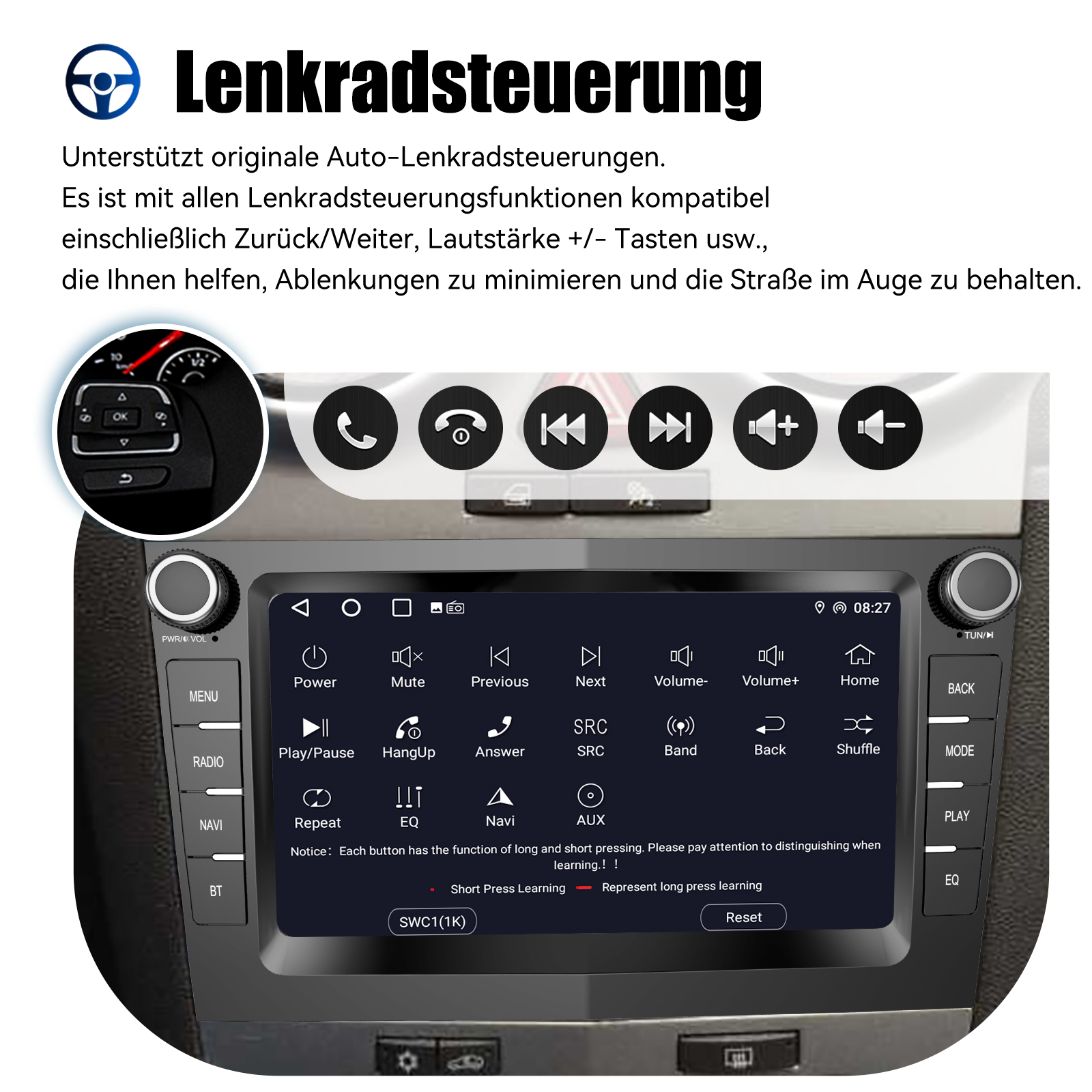 Rückfahrkameraeingang und Lenkradkontrolle: Nach dem Anschluss an die Rückfahrkamera. Das Radio zeigt automatisch das Rückfahrbild an, sobald Sie den Rückwärtsgang einlegen. Machen Sie Ihr tägliches Rückwärtsfahren sicherer. Unterstützt AHD-Kamera. Unterstützt die originale Auto-Lenkradsteuerung (wenn Ihr Auto Canbus nicht unterstützt und SIE die Lenkradtasten lernen), um das Fahren bequemer und sicherer zu machen.