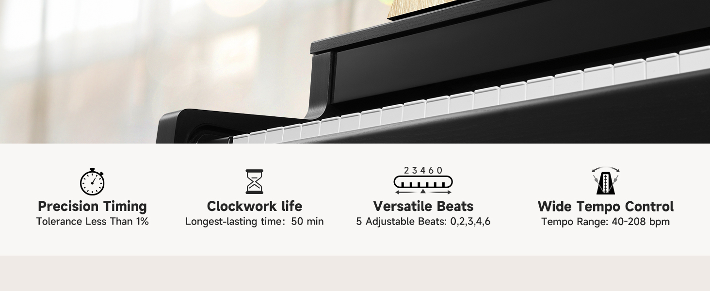 【 INCREDIBLE FEATURES 】: Suitable for practicing any musical instrument. It can make up 40 to 208 beats per minute, and the beat selection is 0, 2, 3, 4, 6. It has a tempo tolerance of 1% and a beat by wood block chip sound with a 5 position on/off bell