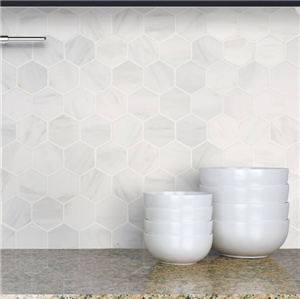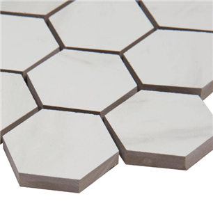 This MSI's Kolasus White Matte Hexagon Porcelain Mesh-Mounted Mosaic Tile comes in 1 sq. ft. sections for ease of installation and offers a lovely marble look with stunning whites and dramatic gray veining that delivers class and graceful style in durable porcelain. This tile features 2 in. hexagon chips on a mesh-mounted mosaic sheet with a smooth finish and can be used for whole floors or wall sections or trimmed to provide a striking accent as desired. Use the tile in various areas around the home for medium-duty flooring such as in kitchens, hallways or even outside around terraces or balconies. The slip-resistant design is recommended for indoor use.