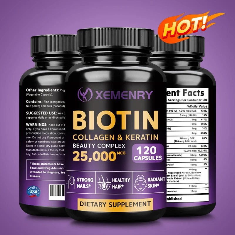 Biotin Collagen and Keratin Supplement - An required mixture of biotin vitamins, collagen and keratin. Our Biotin for Men and Women nourishes your hair, skin and nails, reducing the signs of aging by replenishing your body with essential oxidants.