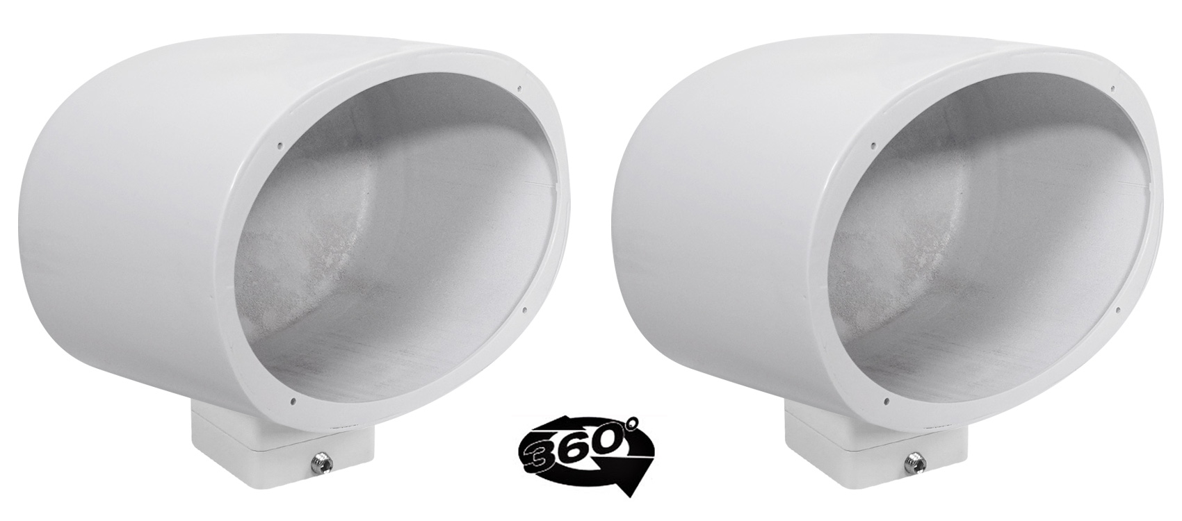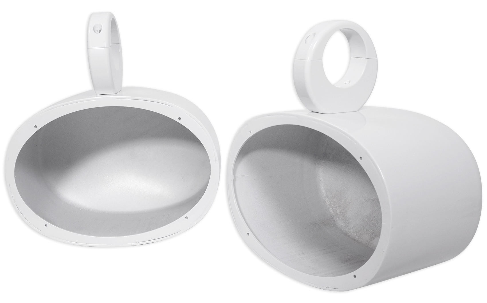 These awesome pods are built of super strong aircraft grade 6061 aluminum. The MAC69W features a white powder-coat finish which offers unparalleled resistance to chipping, scratching, and fading. They are fully marinized which means they’ll withstand the elements on the water. These cans are 100 % waterproof. What makes our technology the best on the market is that our pods are internally wired! This means the terminals are inside the pod and the wires are fed through pre-drilled holes on the pod and clamp. Simply align the wire opening with the hole on your tower and you are done! No exposed wires or terminals! Aluminum cans will last forever!