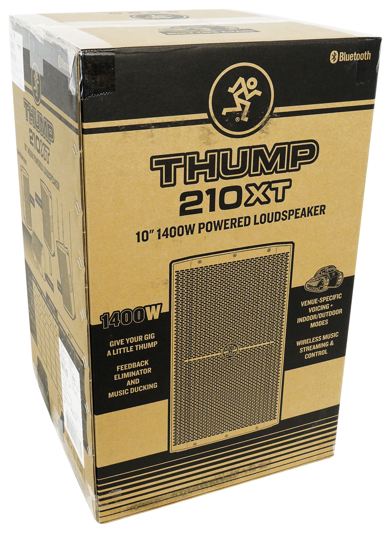 Mackie Thump210XT is a compact 10” 1400W loudspeaker featuring proven sound quality, Bluetooth®, Feedback Eliminator, Music Ducking and powerful enhancements. Connect to two XLR/TRS inputs, stereo 1/8" aux connection or Bluetooth®. Lightweight and Built-Like-A-Tank™, Thump210XT is the ultimate compact loudspeaker for mobile PA systems, DJs, bars and more