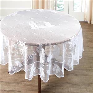 Lay this 84" X 60" Rectangular Silent Night Lace Tablecloth on your dining room table for a beautiful look throughout the holiday season.