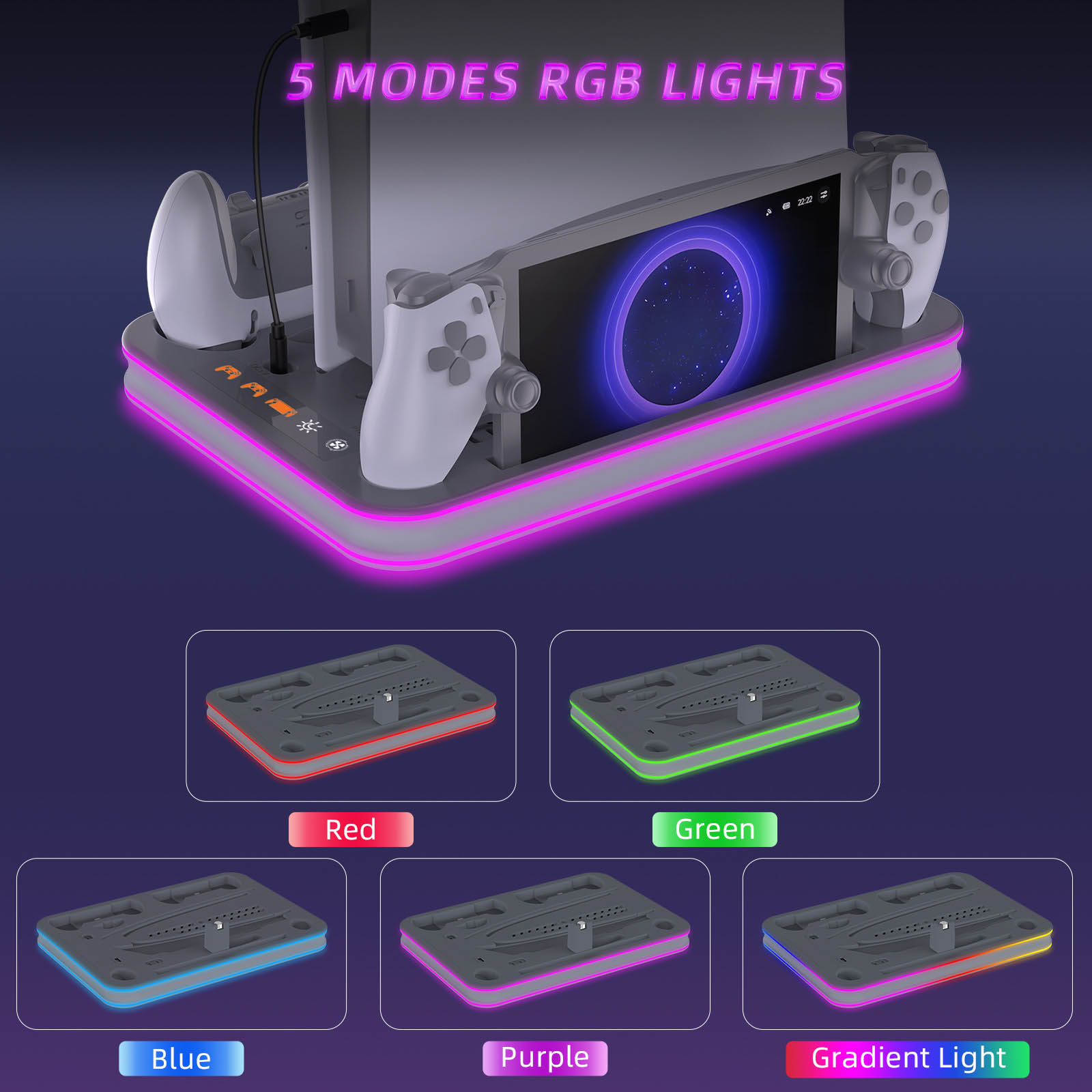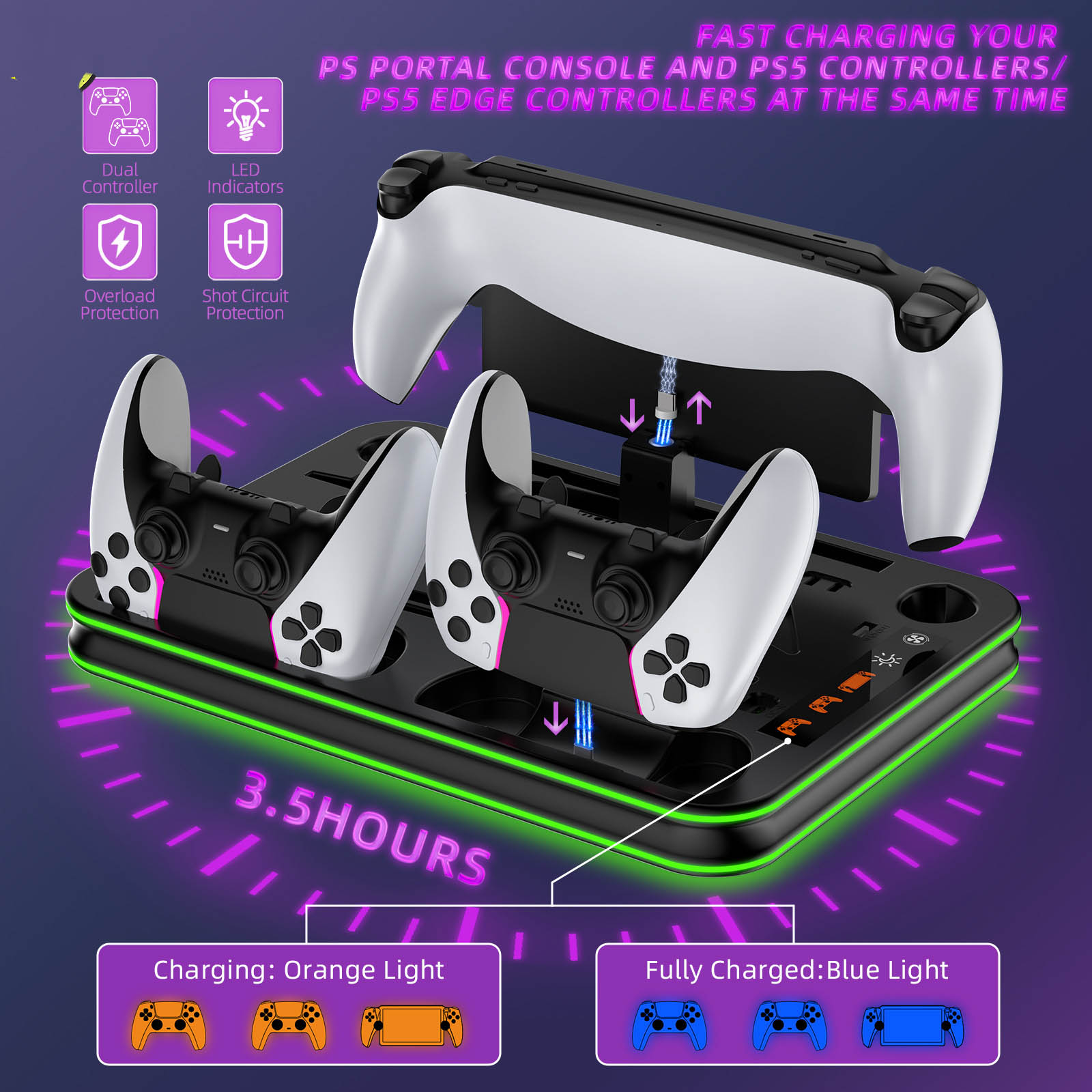 * CHARGE AND STORAGE: PS5 Grip, PS5 Elite Grip, PlayStation Portal handheld.