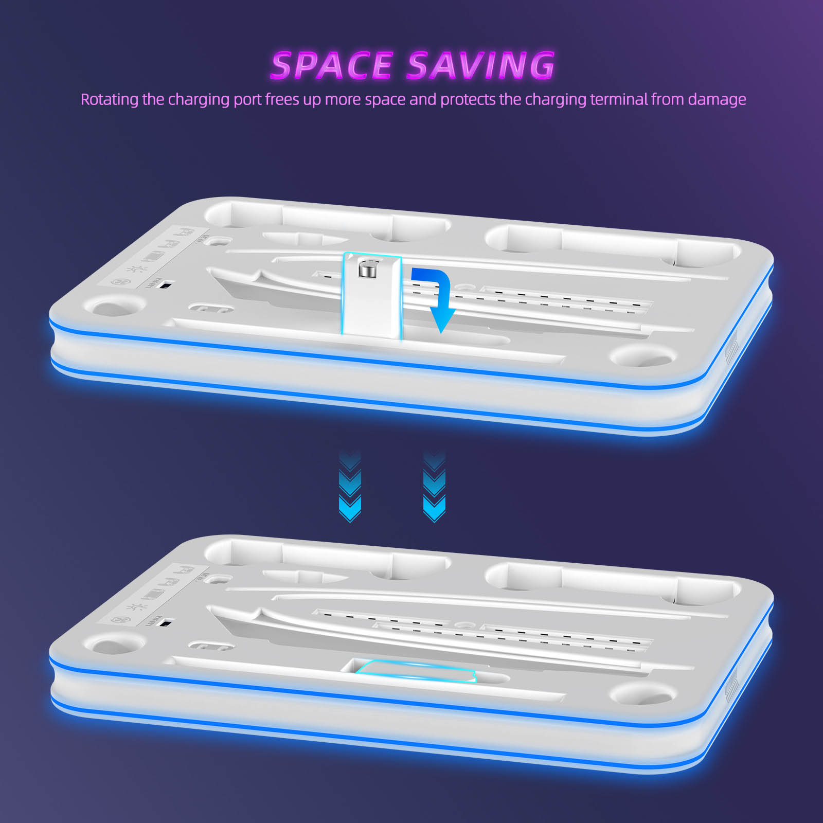 2.Connect the dock to the console with the USB cable provided in the package, plug one end into the Type-C terminal of the console and connect the other end to the Type-C power terminal of the dock
