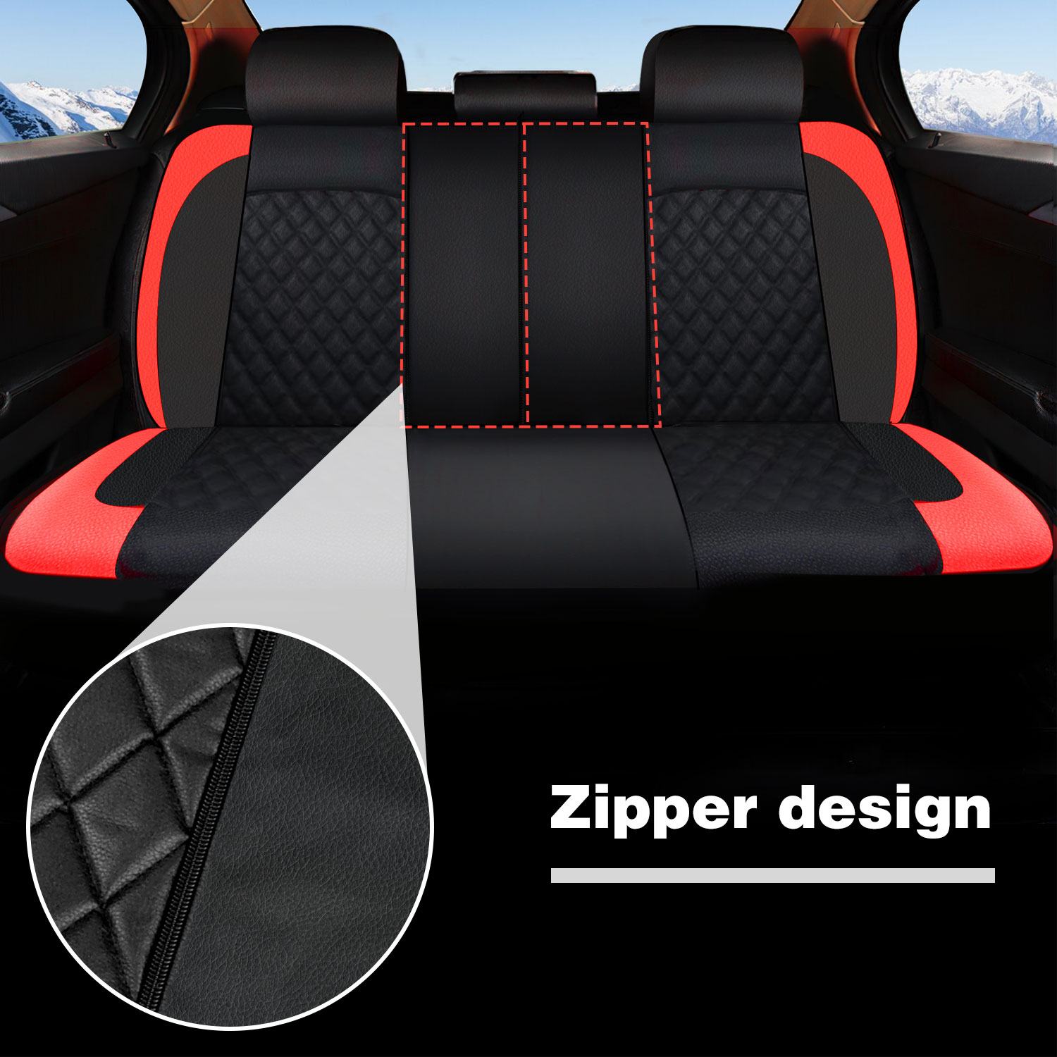 UNIVERSAL FIT: The Seat covers are designed in universal size fitted most cars. 3 zippers on rear backrest cover designed to accommodate 50/50, 40/60, 60/40 and 40/20/40 split. Perfectly fit for most of vehicles including Cars, Autos, Trucks, Vans and SUVs with the reserved opening holes.
