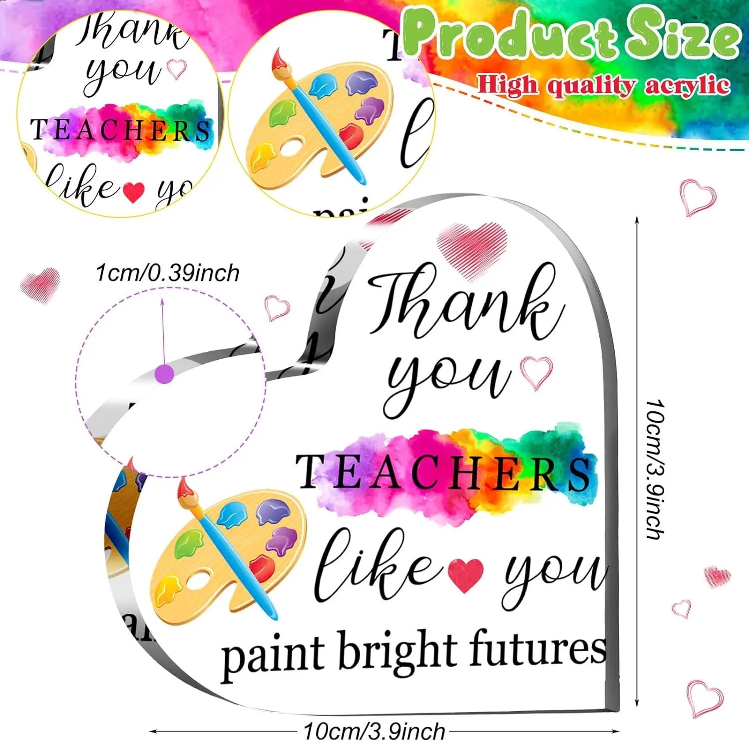 Heart Shape Teacher Appreciation Gift Acrylic Table Desktop Plaque Decor Display