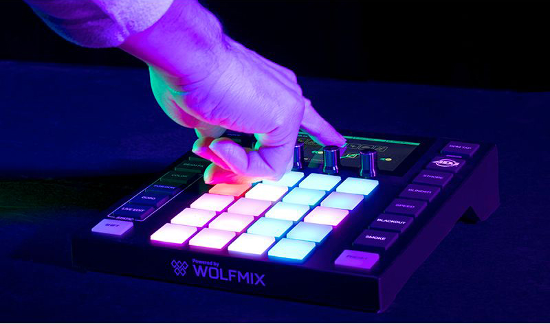 The WMX1 Mk2, powered by Wolfmix, is a standalone lighting control system designed with the performer in mind. Featuring a 4.3” color touchscreen display and 37 backlit silicone buttons, it allows intuitive hands-on control of a DMX lighting setup. It features a toolbox of FX modules and eight independent fixture groups which allow for the simple creation of high-impact light shows on the fly without a computer. Ideal for mobile entertainers as well as bars, clubs, and entertainment venues, this compact but powerful controller puts creative lighting control at any user’s fingertips. WMX1 MK2 upgrades include larger encoder caps, MIDI triggering, and an added USB-A socket for MIDI controller or memory stick.