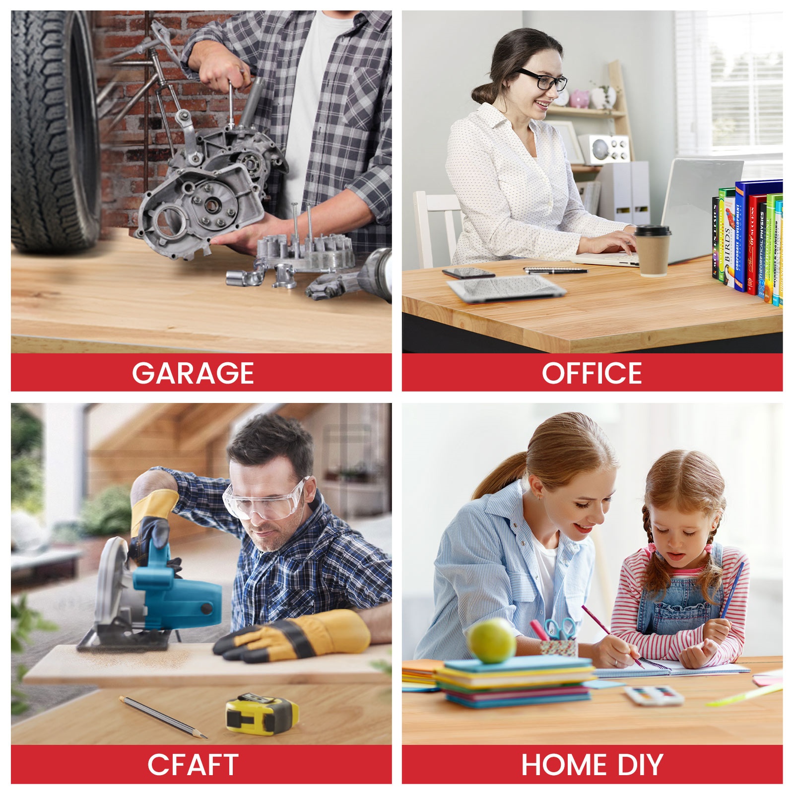 Size: 60x22x37 inch. Suitable for multiple uses such as 𝐠𝐚𝐫𝐚𝐠𝐞, 𝐬𝐡𝐨𝐩, 𝐡𝐨𝐦𝐞 𝐚𝐧𝐝 𝐨𝐟𝐟𝐢𝐜𝐞. With 𝐩𝐫𝐞-𝐝𝐫𝐢𝐥𝐥𝐞𝐝 𝐡𝐨𝐥𝐞𝐬, the work table can be set up