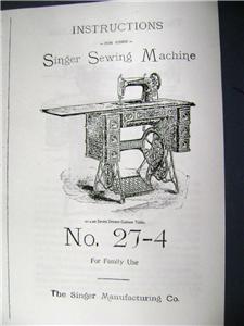 "Very functional and usable replica manual for the antique Singer 27-4 treadle sewing machine that I inherited. Will be a handy companion for my restoration and maintenance activities. Thank you for having it available!"