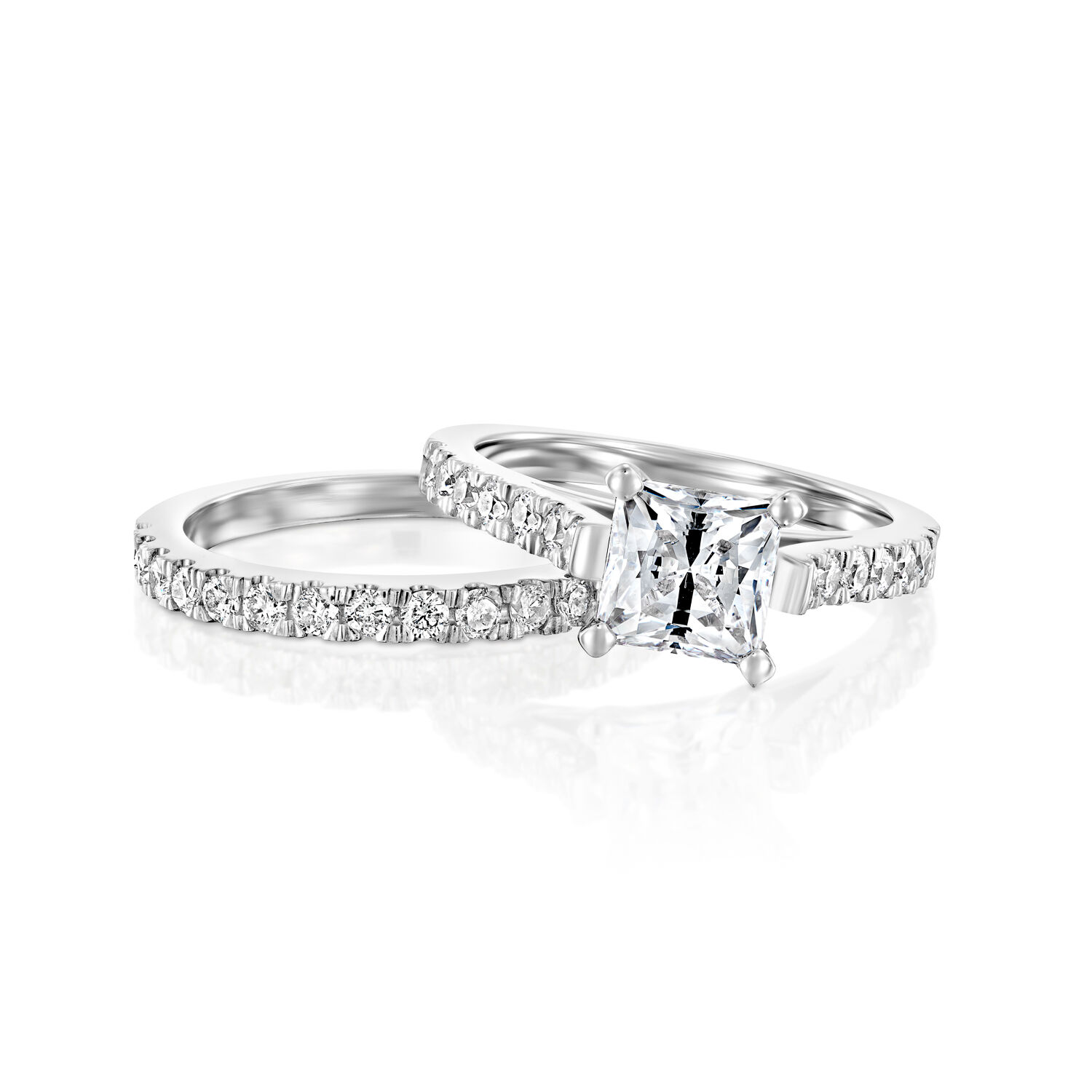 1.71 CT Natural Princess Cut Diamond Engagement Ring Set 14K White Gold F/SI1