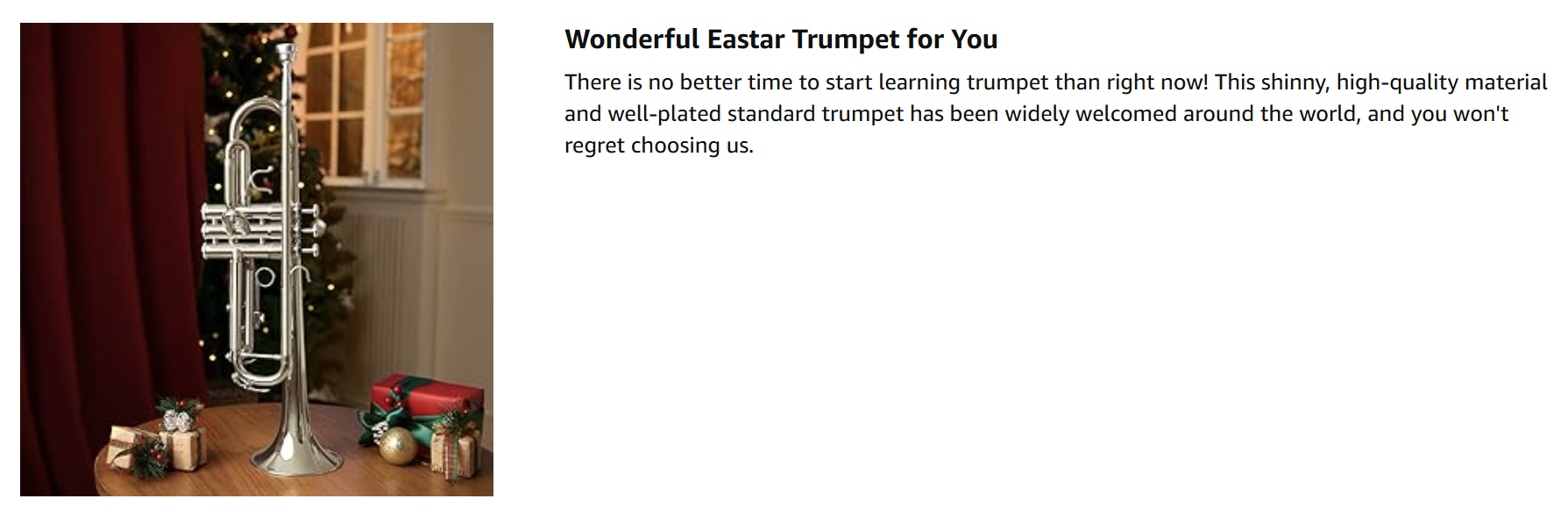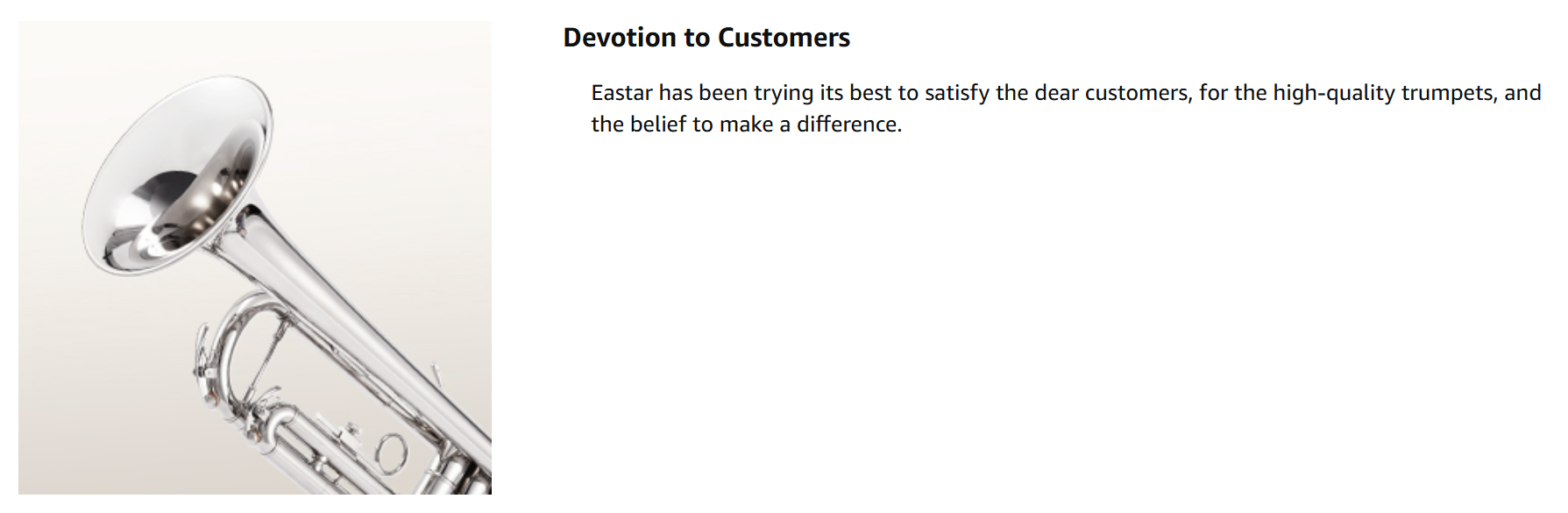 AMAZING TIMBRE — The sound and timbre of Eastar Bb trumpet are pure and bright, abundant and powerful, with excellent vibration. Also a user-friendly brass instrument for beginners and students.
