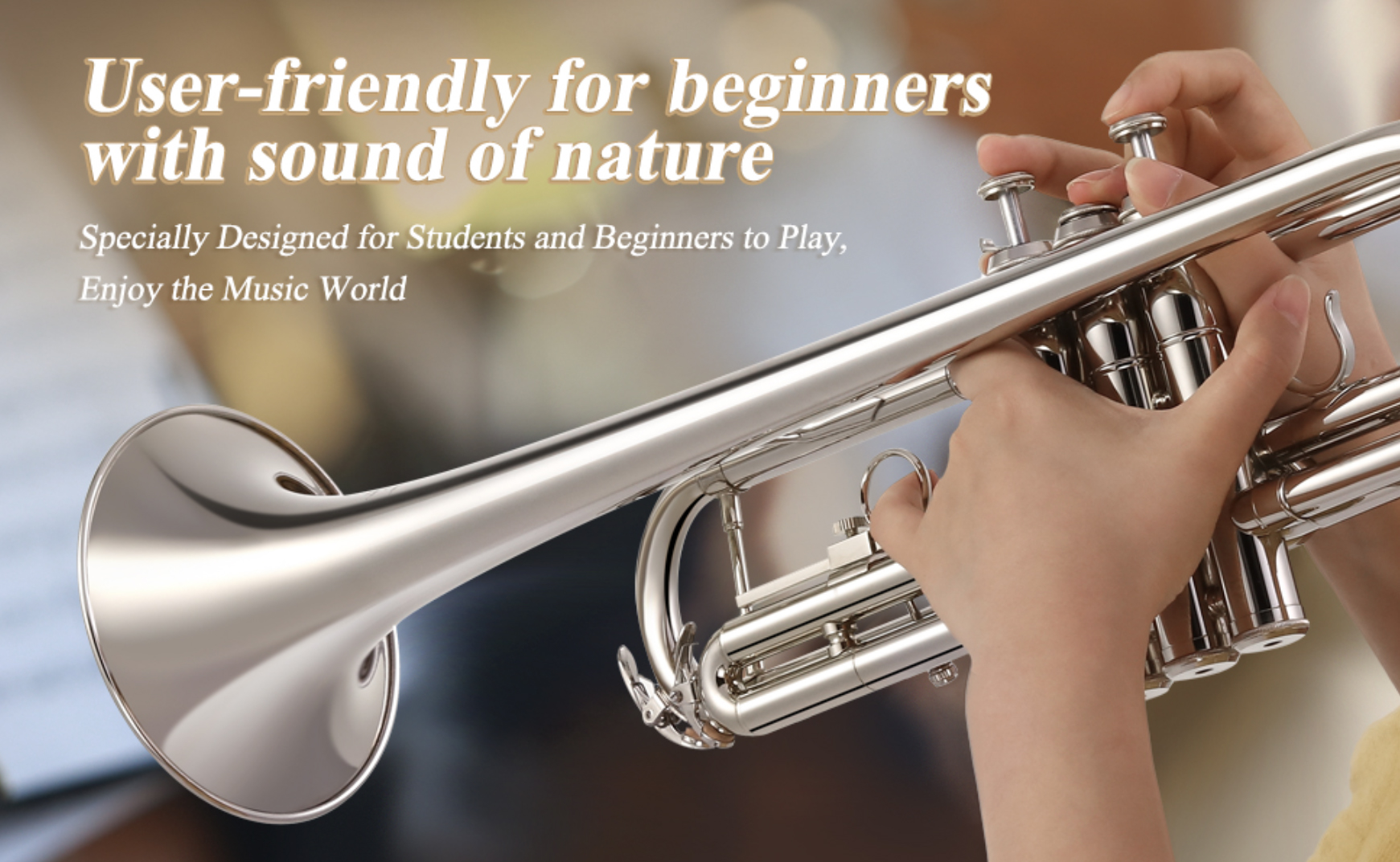 BEAUTIFUL APPEARANCE — Applying nice-looking lacquer plating, dazzling and shiny color, superb reflection, this trumpet must be a decent choice as a gift for those who you care and love.