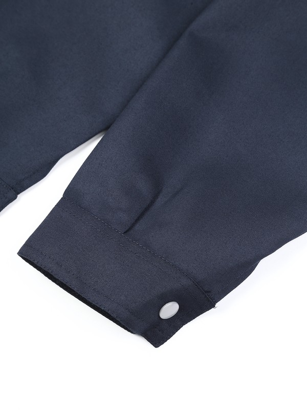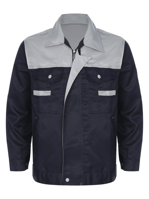 Long sleeve for men women, color block design, zipper and press button closure, turn-down collar.