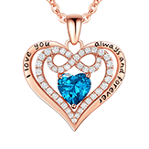 A modern token of love, this birthstone jewelry for mom features an infinity and double heart pendant with a heart-shape centered cubic zirconia; Our crystal jewelry shines like a diamond, making this fabulous infinity birthstone necklace the chicest grandmother necklace from grandchildren, personalized mother daughter necklace, and meaningful Mothers Day birthstone necklace.