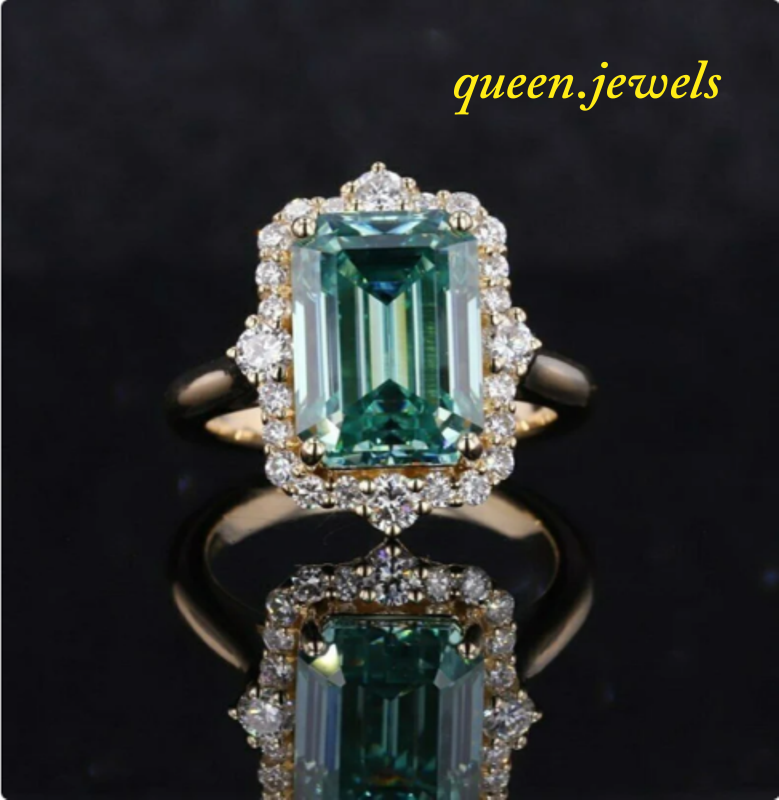 Lab-Created 2.50CT Emerald Cut Blue Diamond Engagement Ring 14K Yellow Gold Over