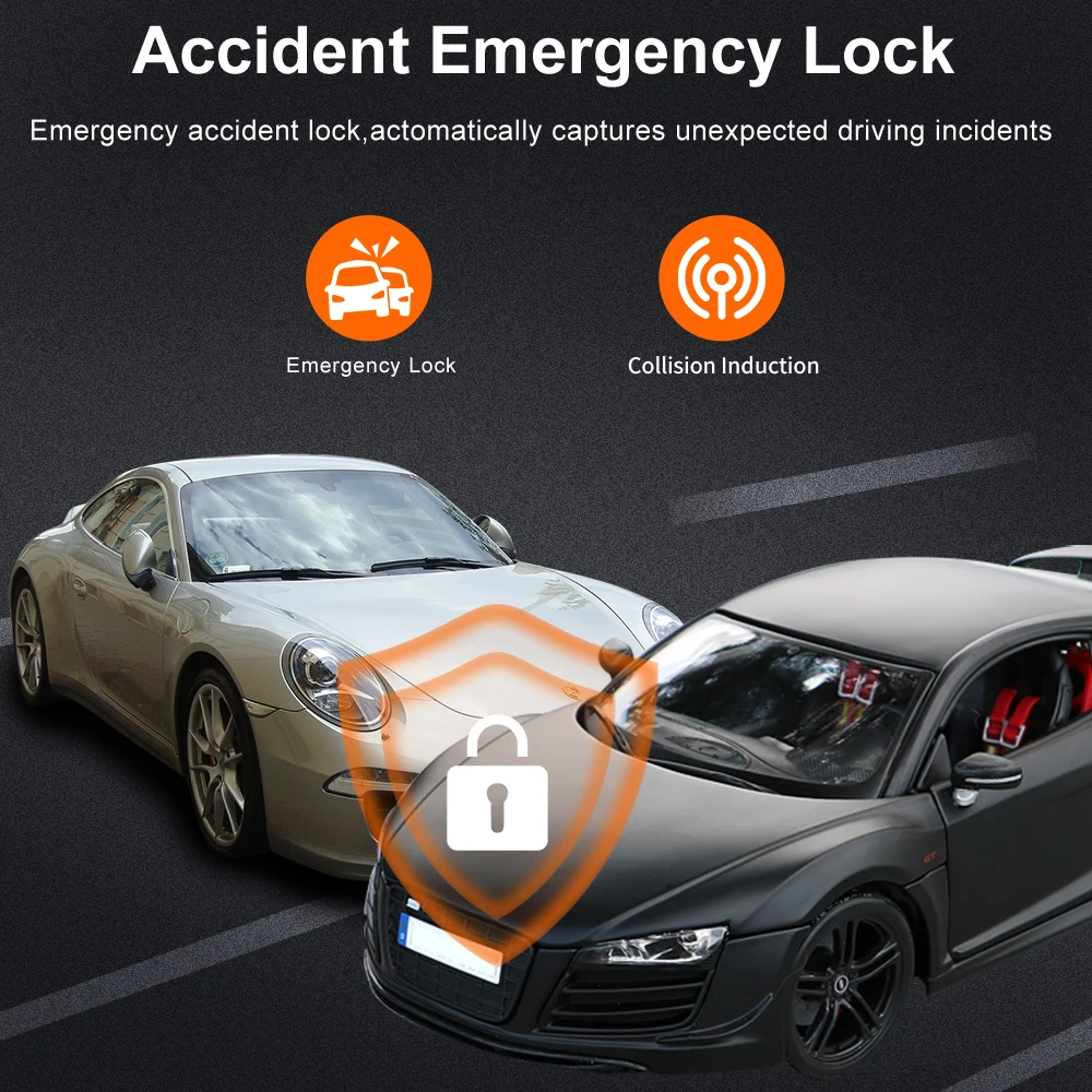 4. ACCIDENT EMERGENCY LOCK: Actomatically captures unexpected driving incidents.
