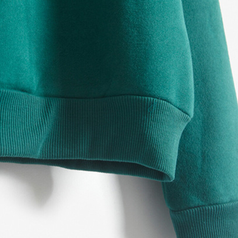 Women's Solid Color Fleece Hoodie Autumn Winter Pullover Crew Neck Sweatshirt