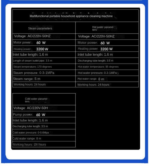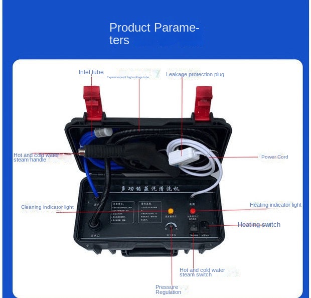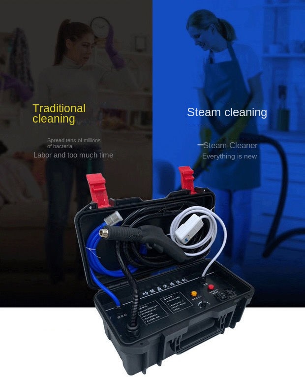 Product Details: 1. This product can be used for caustic soda, high-temperature steam, and sterilization. Health, safety and environmental protection 2. High temperature and high pressure steam cleaning can completely solve the oil pollution. 3. It can work continuously for more than 2 hours. 120° high temperature sterilization and decontamination 4. A variety of brush head accessories, suitable for kitchens, bathrooms, floors, cars and other places 5. Multiple protection devices, anti-dry burning, anti-leakage, high temperature protection Product parameter: Function: kitchen air conditioner cleaning, disinfection, high temperature sterilization. Type: Handheld steam cleaner Voltage: 110V/220-240V Power: 3200W Pressure: 5bar~9bar Heating speed: 20s Inlet pipe length: 1.6M Steam pipe length: 3.5 m Power cord length: 1.8m High temperature steam: 100~130 degrees Celsius Product size: 430*23*20mm Net weight: 5.4kg