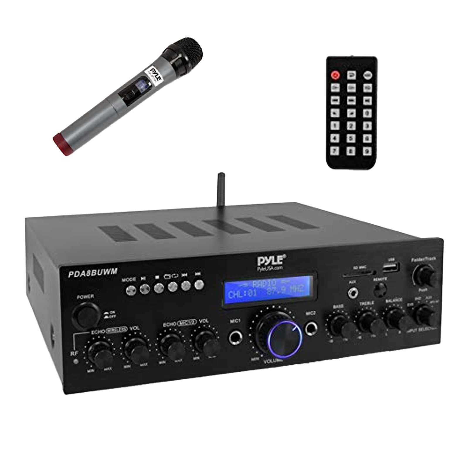 Pyle PDA8BUWM 2-Channel Home Theater Bluetooth MP3/USB/SD/AUX/FM Radio Receiver w/Wireless Microphone with 50 ft 16 Gauge Speaker Wire