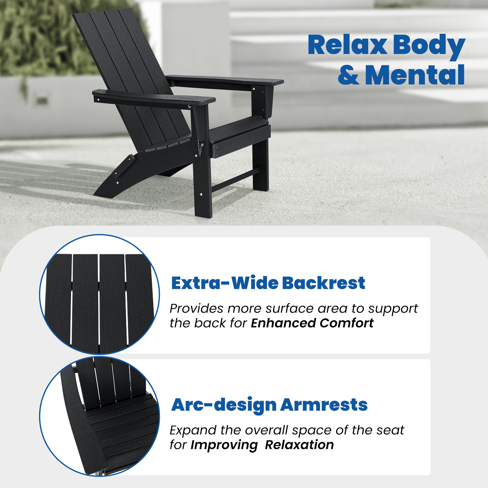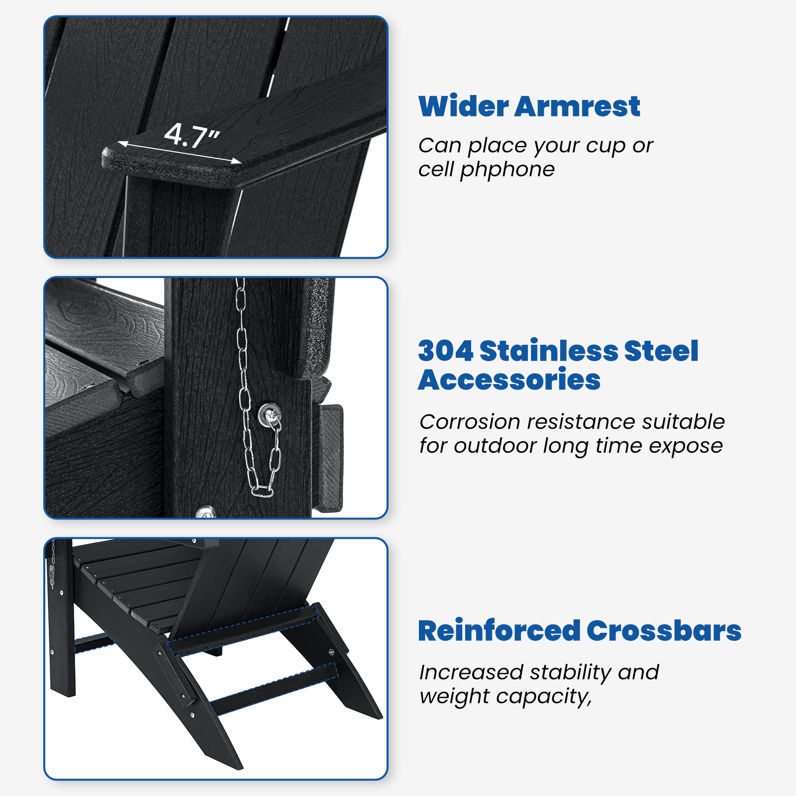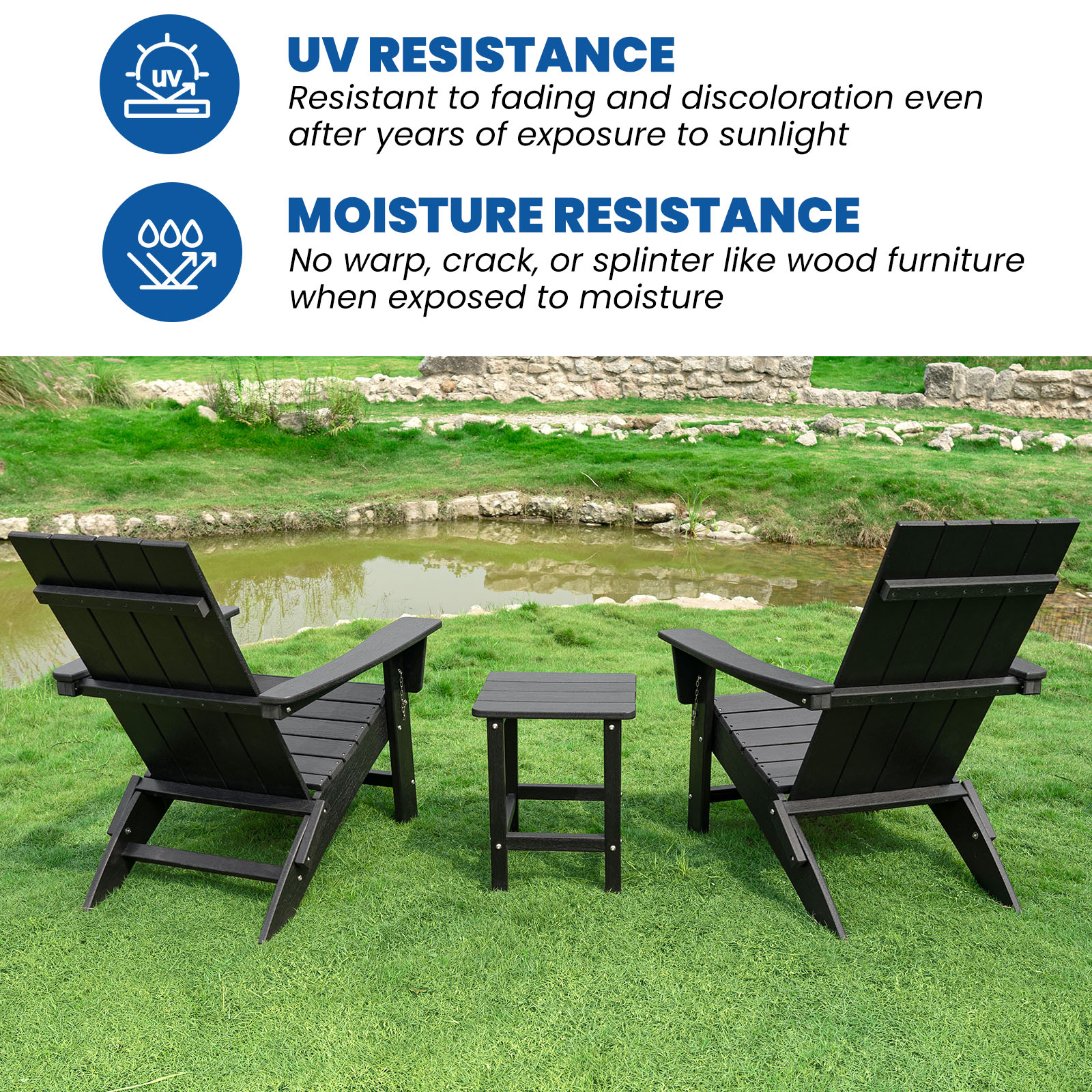 4. HDPE Synthetic Material : friendly to the environment, more weather-resistant, anti-fade than wood.