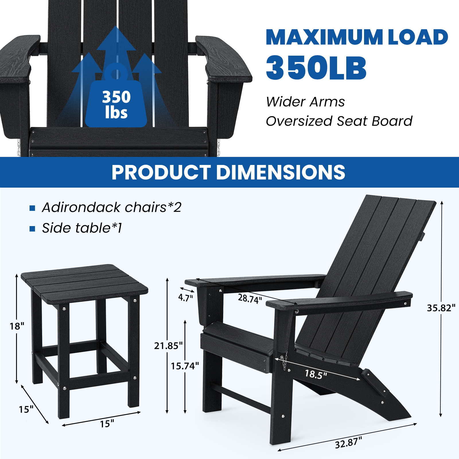 1 x Side Table + 2 x Adirondack Chairs