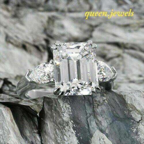3.20CT Emerald Cut Diamond Lab-Created 3 Stone Wedding Ring 14K White Gold Over