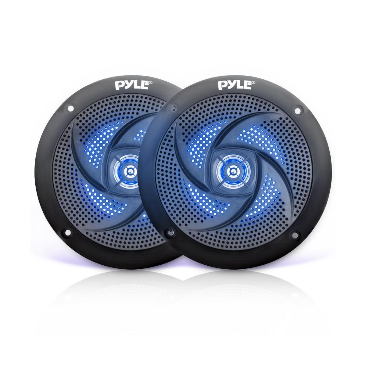 • SPEAKERS: Pyle 5.25" marine speakers feature built-in illuminating blue LED lights, low profile design that can be easily installed on boats, marine watercrafts and other off-road vehicles, weather resistant feature to withstand heavy water splashes and other outdoor conditions.