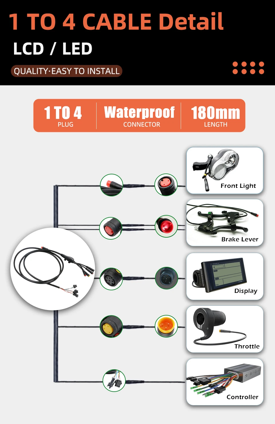 1x Waterproof 1 to 4 cable