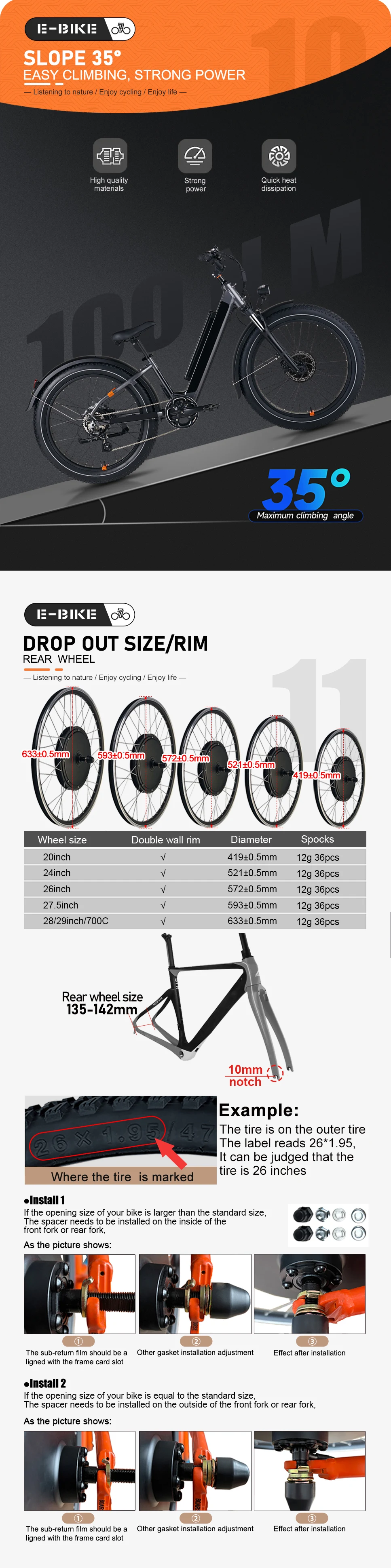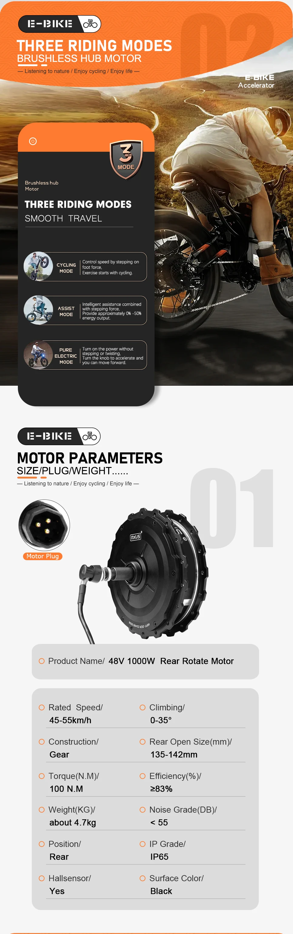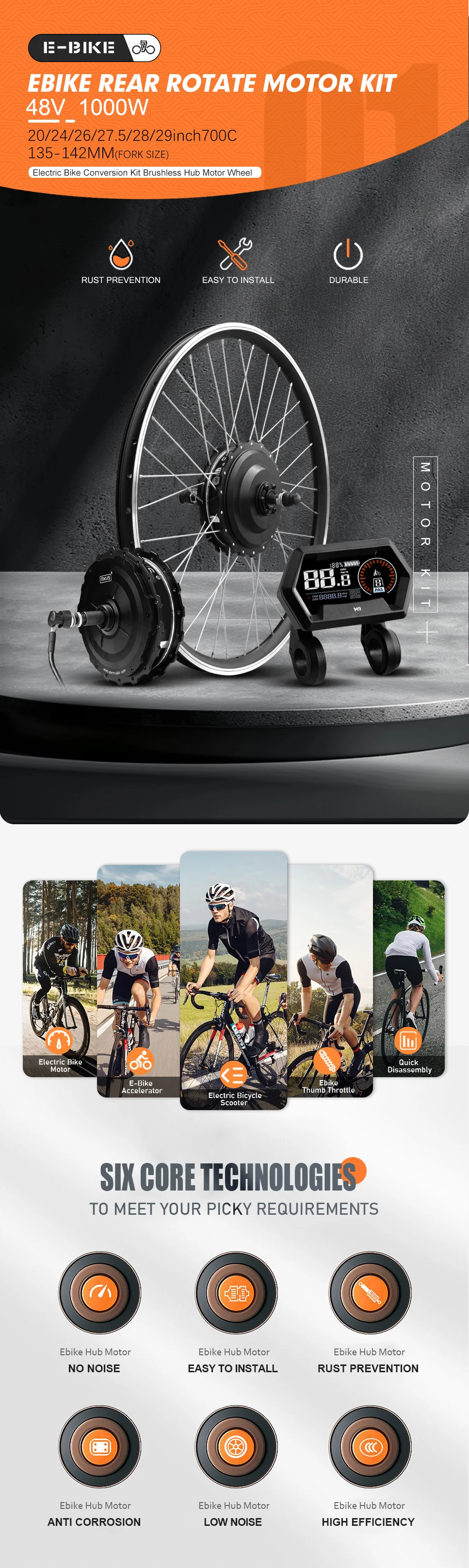 ◆Electric bicycle rear wheel conversion kit features 48V 1000W brushless and gear hub motor for efficient and noiseless running; can easily convert your bicycle to electric bike and reach the maximum riding speed of 45-55KM/H, suitable for regular bicycles and mountain bikes that are used on commuting and short journey