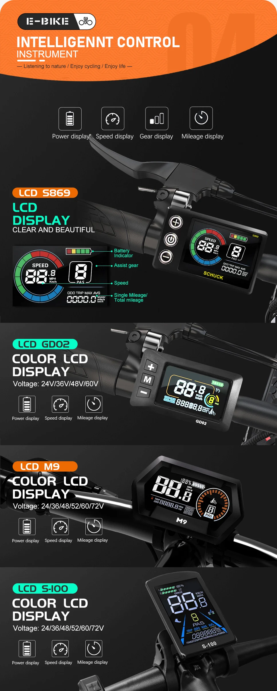 ◆Aluminum alloy frame for durability and stability, can support a heavy weight up to 220 Lbs; drive system without moving chains or gears for anti-friction; HD LCD display shows all the essential information such as battery percentage, speed, total and single trip distance, wattage, PAS levels, and error codes for easier troubleshooting.