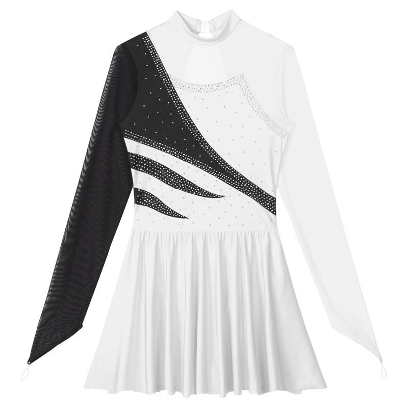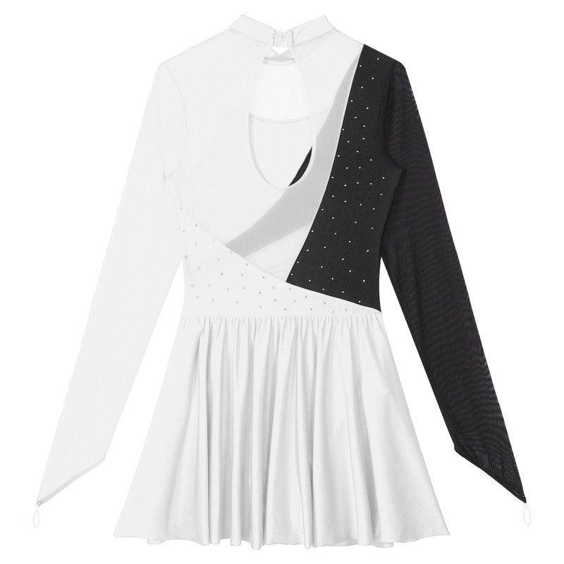 Color block patchwork, the bodice is decorated with rhinestones, when you wear this unique dance dress, you will be the focus of the crowd.