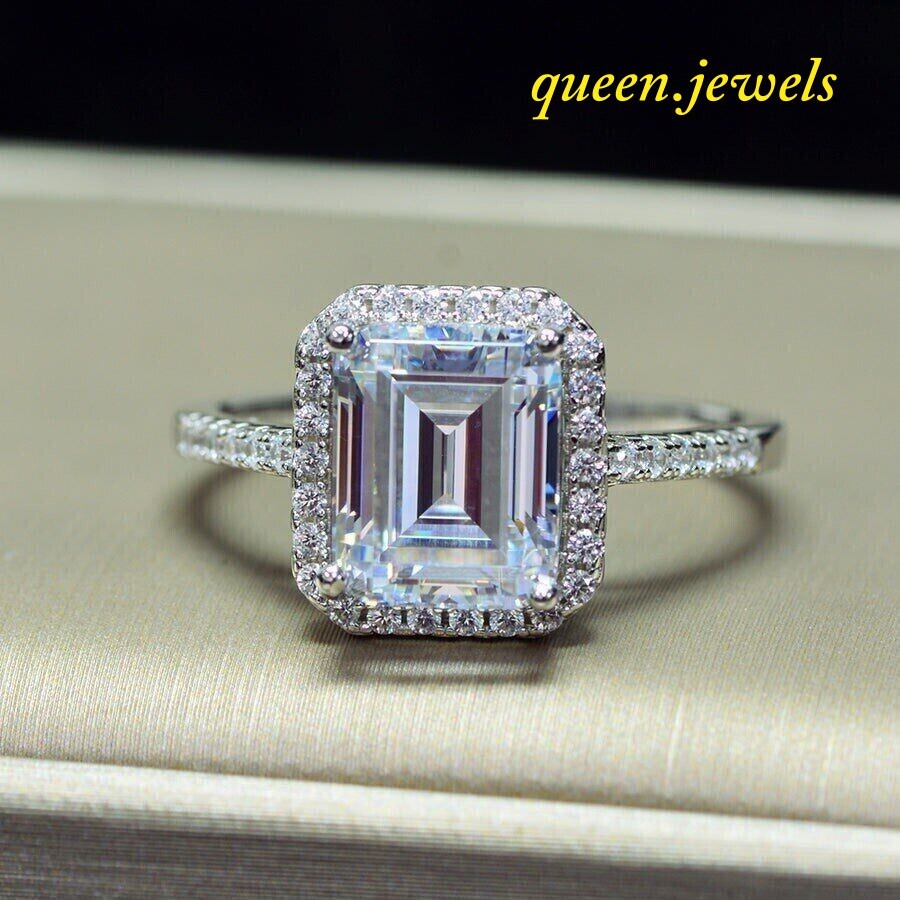 Lab-Created 2.57CT Emerald Cut Diamond Engagement Wedding Ring 14K White Gold FN