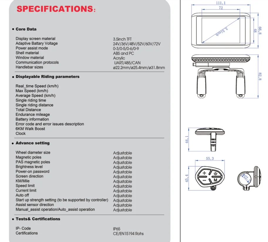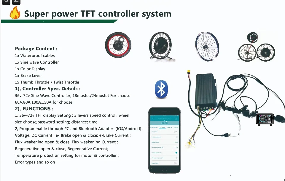 The waterproof UKC1display, throttle, brakes and sine wave system Bluetooth Adapter, are also Included.