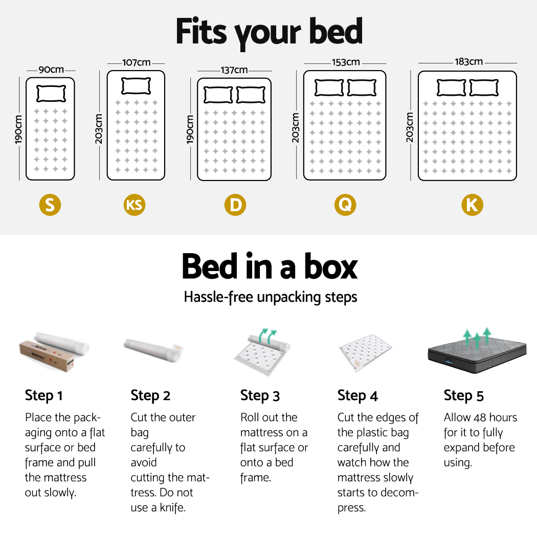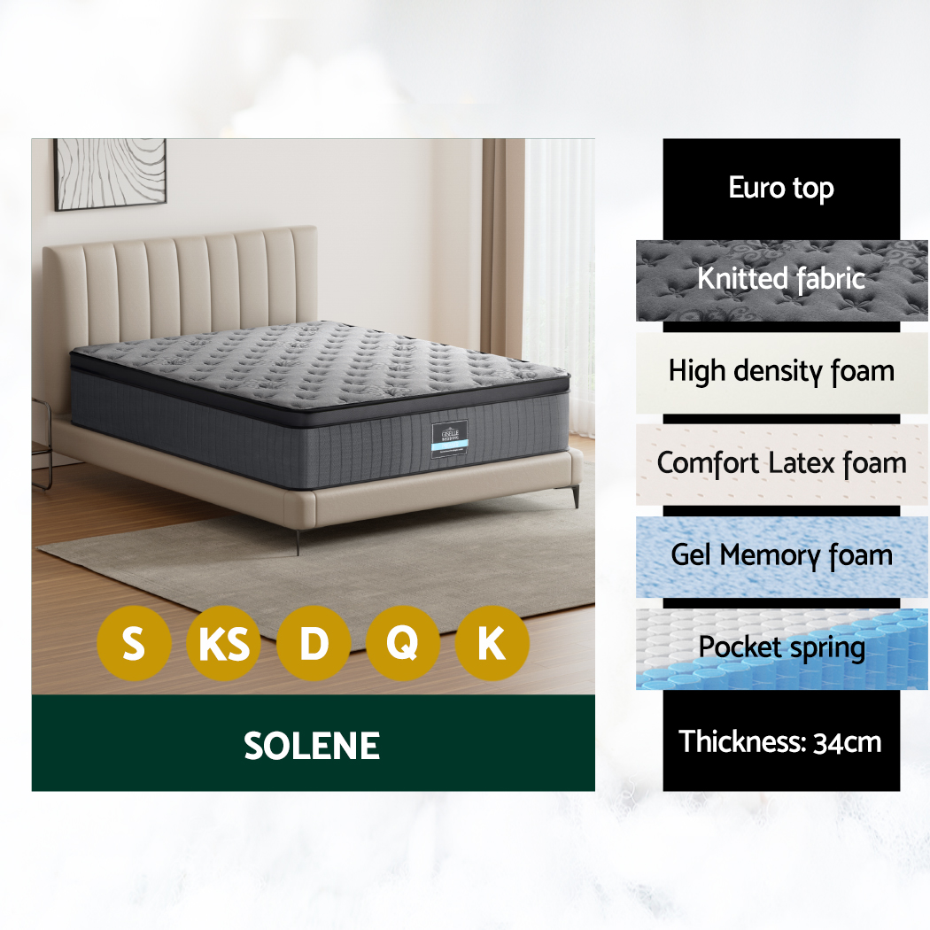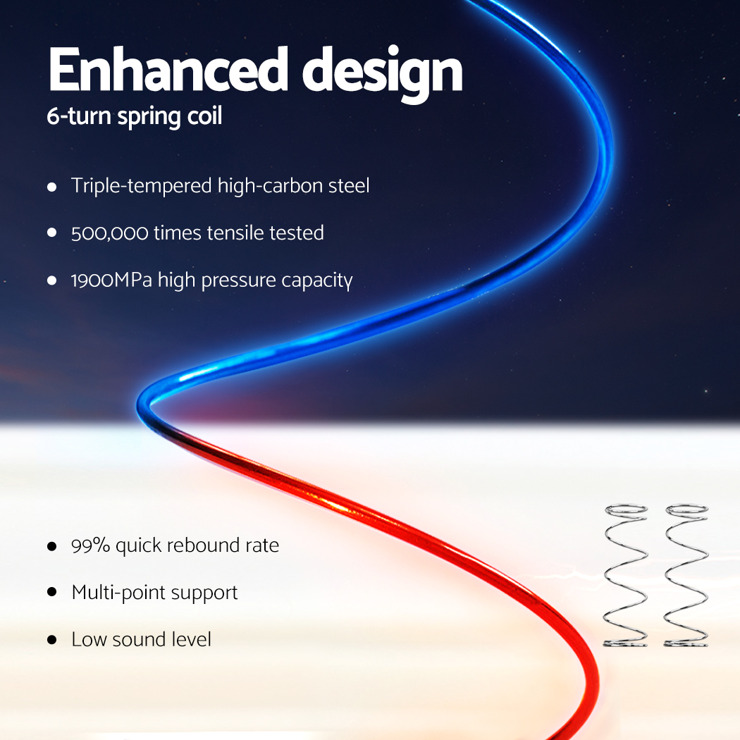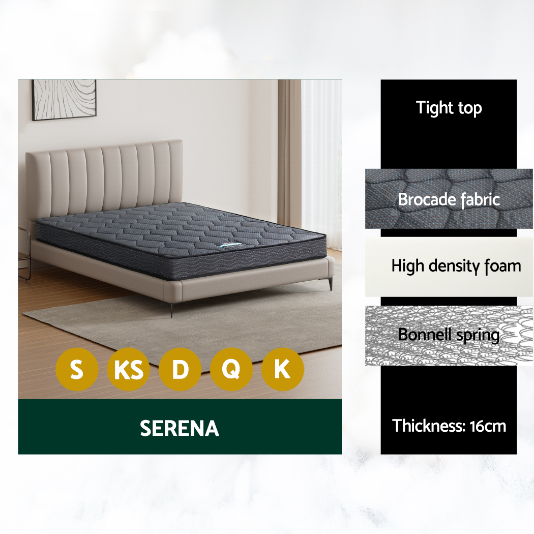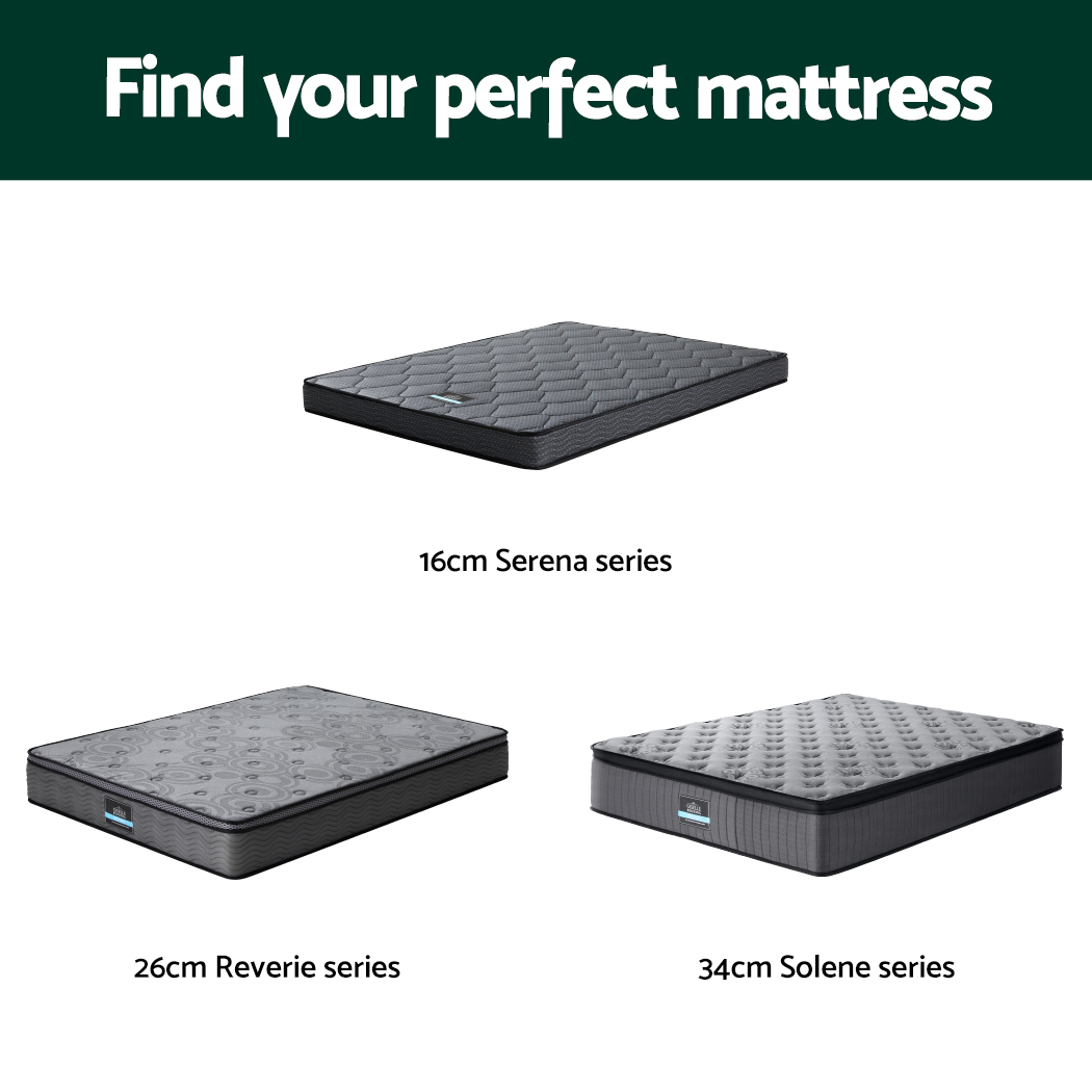 Experience a restful sleep with the Giselle Bedding Spring Mattress range, available in three versatile models to suit your preferences. Designed with high-quality materials and advanced spring systems, these mattresses deliver outstanding support, resilience, and durability. From the compact 16cm Serena Series to the luxurious 34cm Solene Series, each model offers tailored comfort to meet your unique sleeping needs. Hypoallergenic and 99% dust-mite resistant, these mattresses ensure a clean and safe sleeping environment.