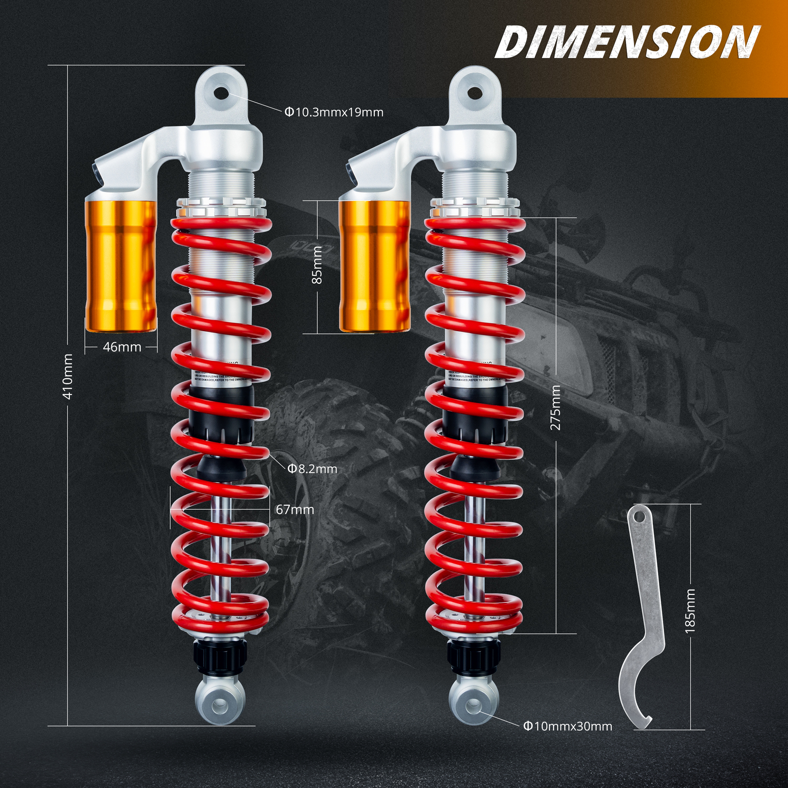 | Package includes | 1 Pair (Left & Right ) Air Front Shocks Absorbers Suspension 1x Shocks Springs Adjustable Tool As Pictures Shown |